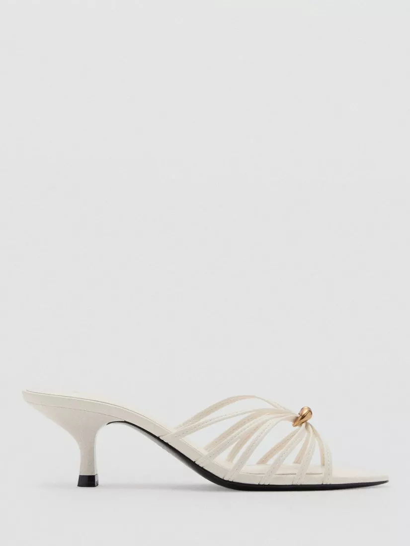 Thin strappy heeled sandals by Mango. The mid kitten heel offers comfort and a subtle lift, while the open toe keeps your style sharp and ready for an evening or party setting.
