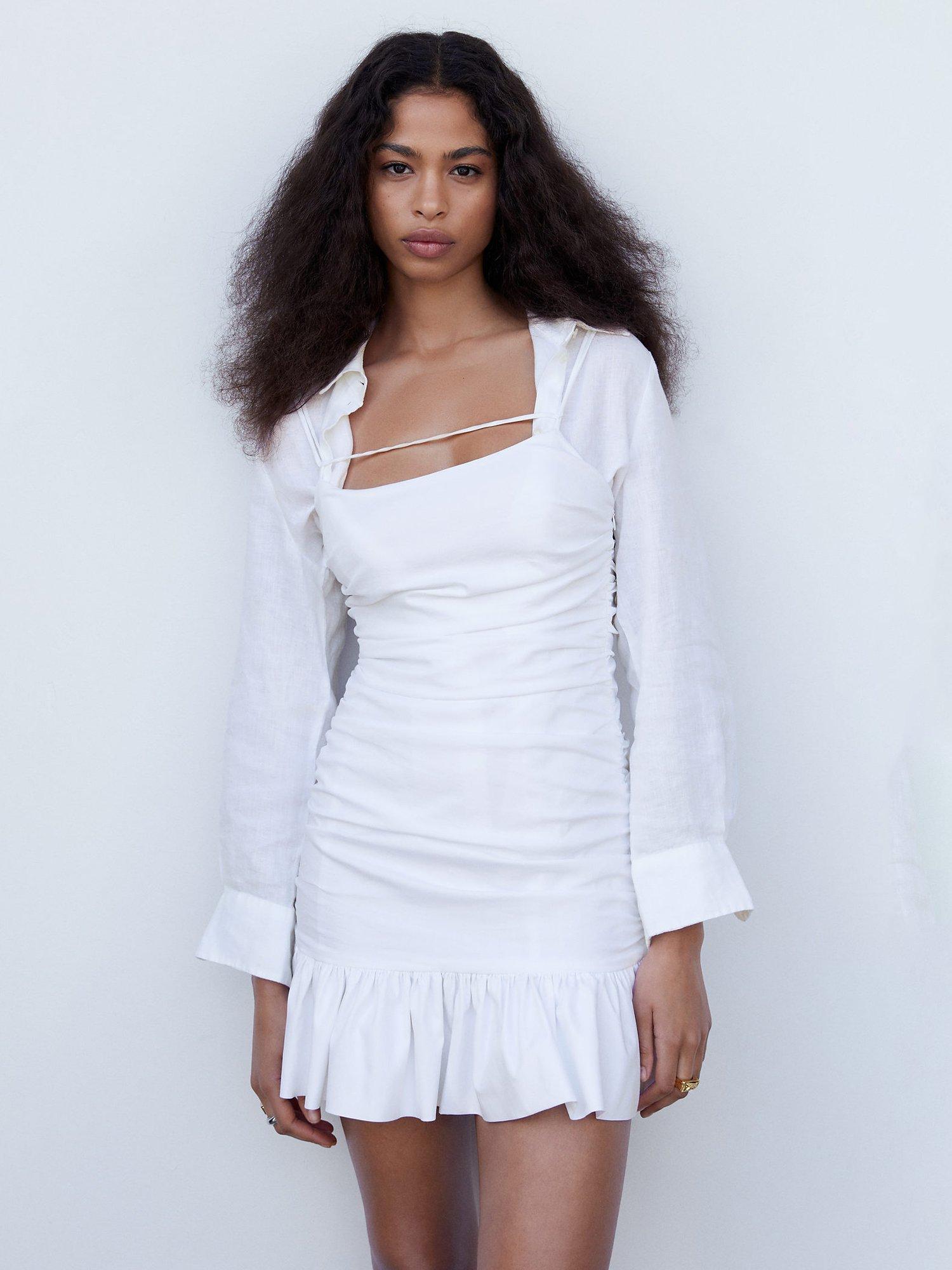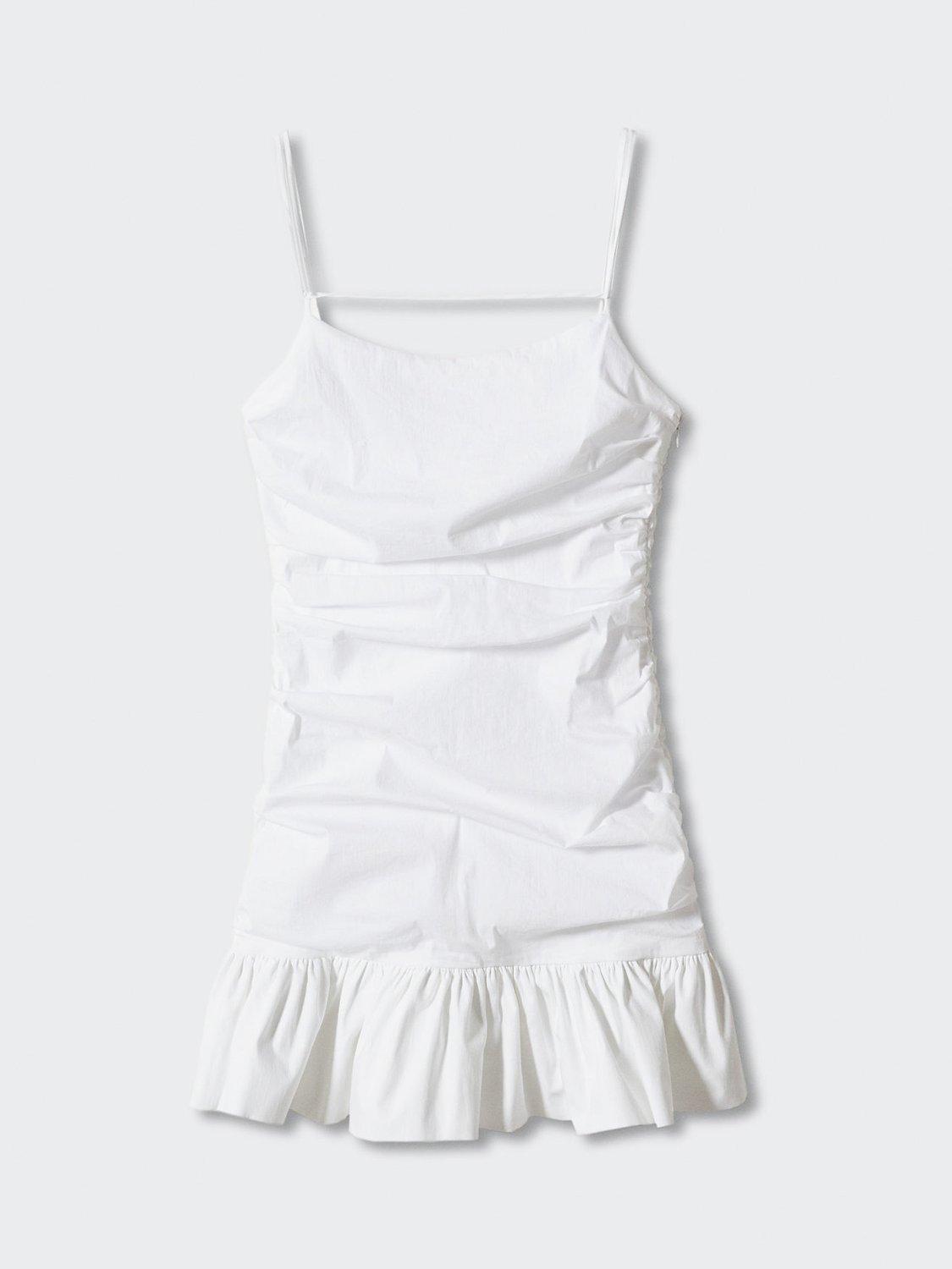 Calling attention to the beauty of your natural form, this mini dress from Mango is blended with cotton. Featuring a contemporary square neckline, this sleeveless style needs no prints or accents to hold the spotlight.