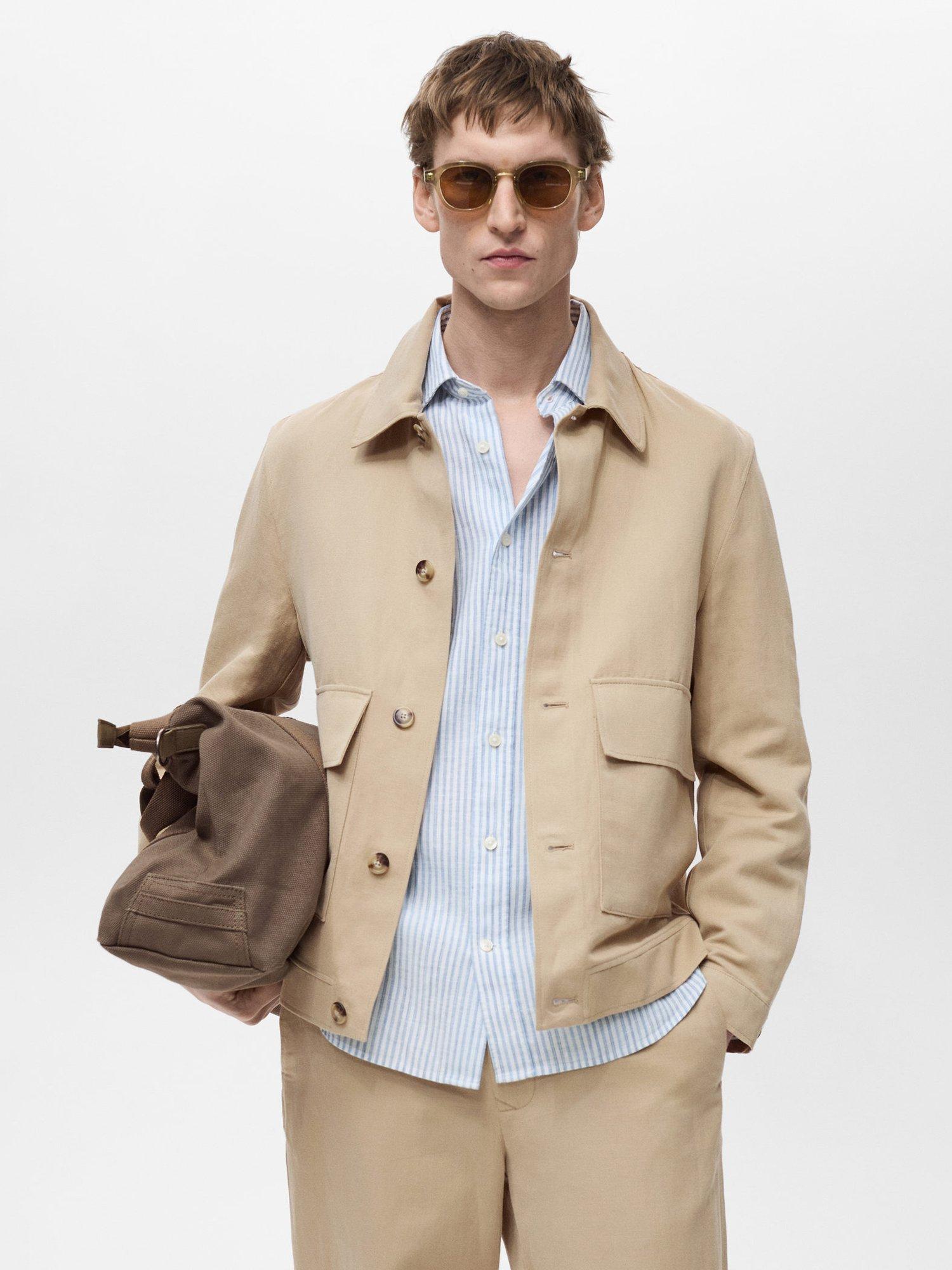 MangoDarren Cotton Linen Blend Shirt Jacket