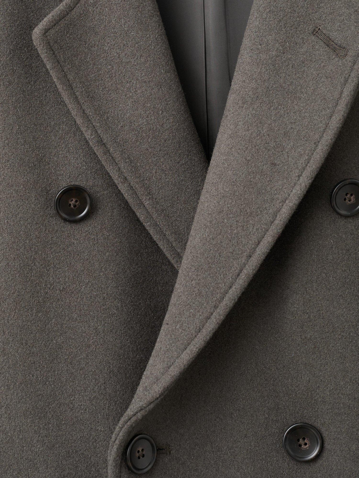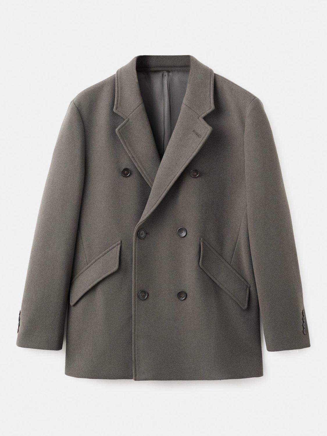 Double breasted and fastening easily with buttons through the front, it is made from a durable wool blend fabric.