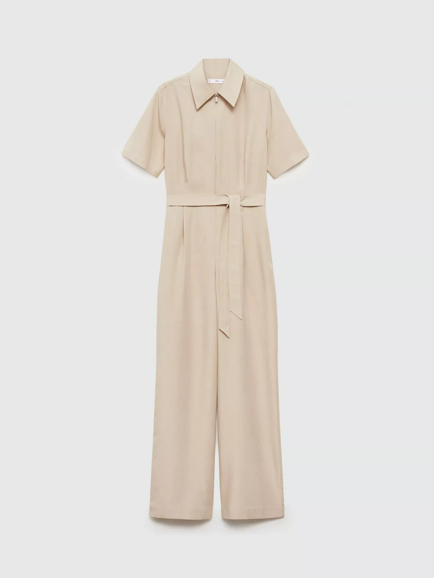 Framed with a sharp collar neckline and short sleeves, this jumpsuit by Mango is straight in shape and is made from from a light linen blend.