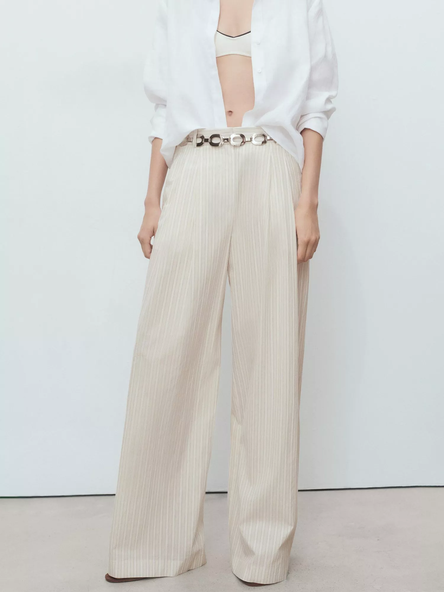 These wide leg, mid-rise tailored trousers in pure cotton feature a subtle stripe, offering all-day comfort and confidence for your day-to-day plans. Practical fastenings make dressing easy, while a clever cut keeps your look sharp and fresh.