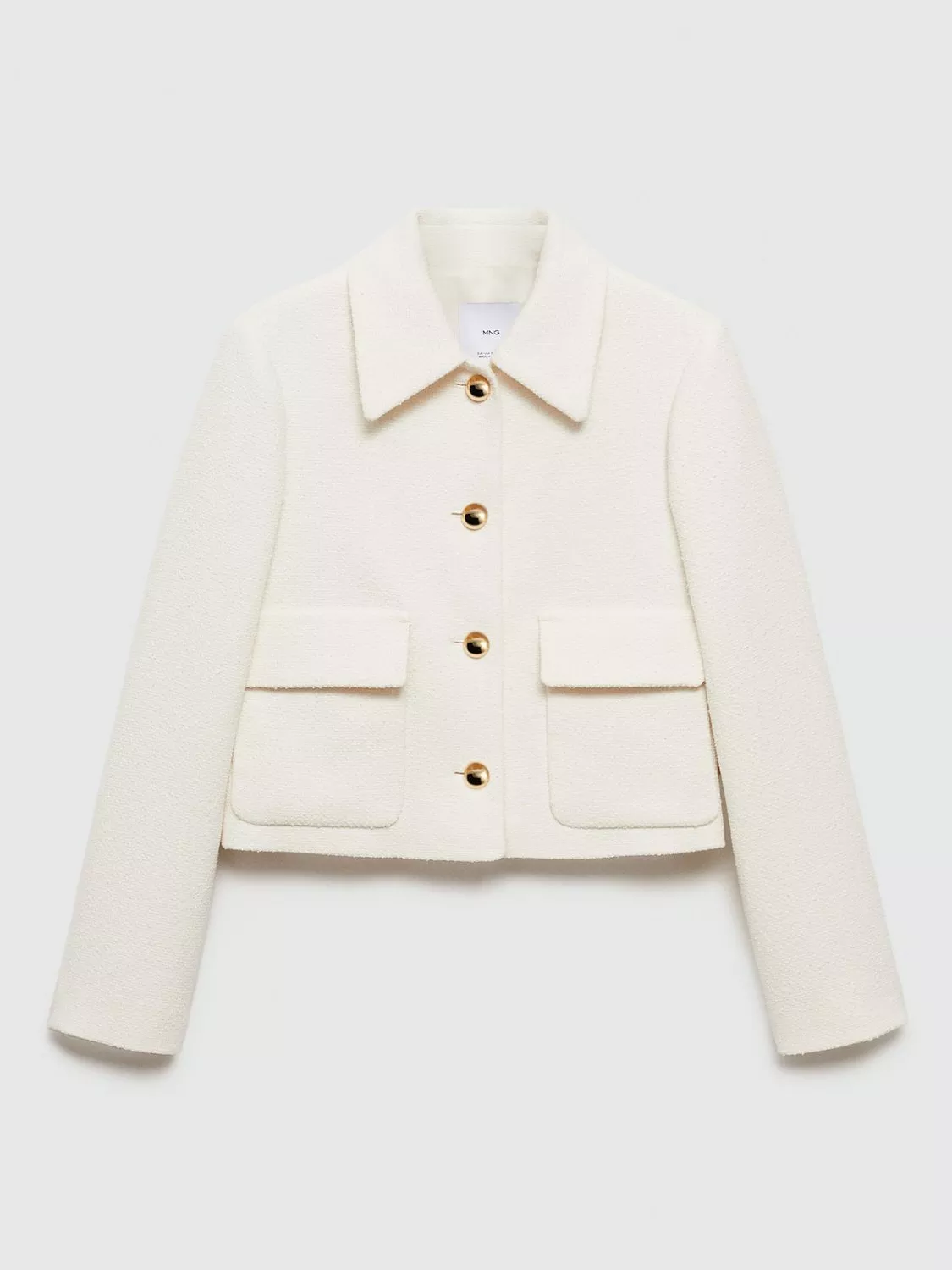Neatly tailored for a sharp finish, this tweed jacket from Mango highlights the waist with its cropped hem.