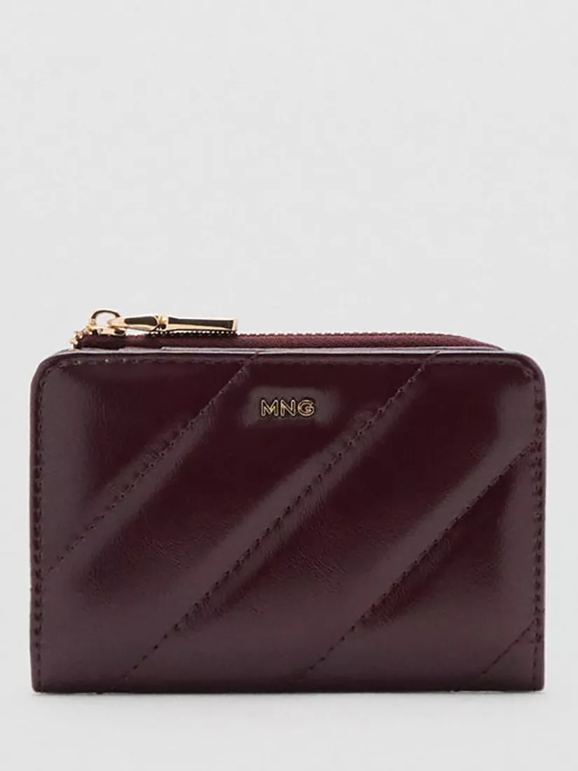MangoDiagonal Quilted Zipped Purse, Dark Red