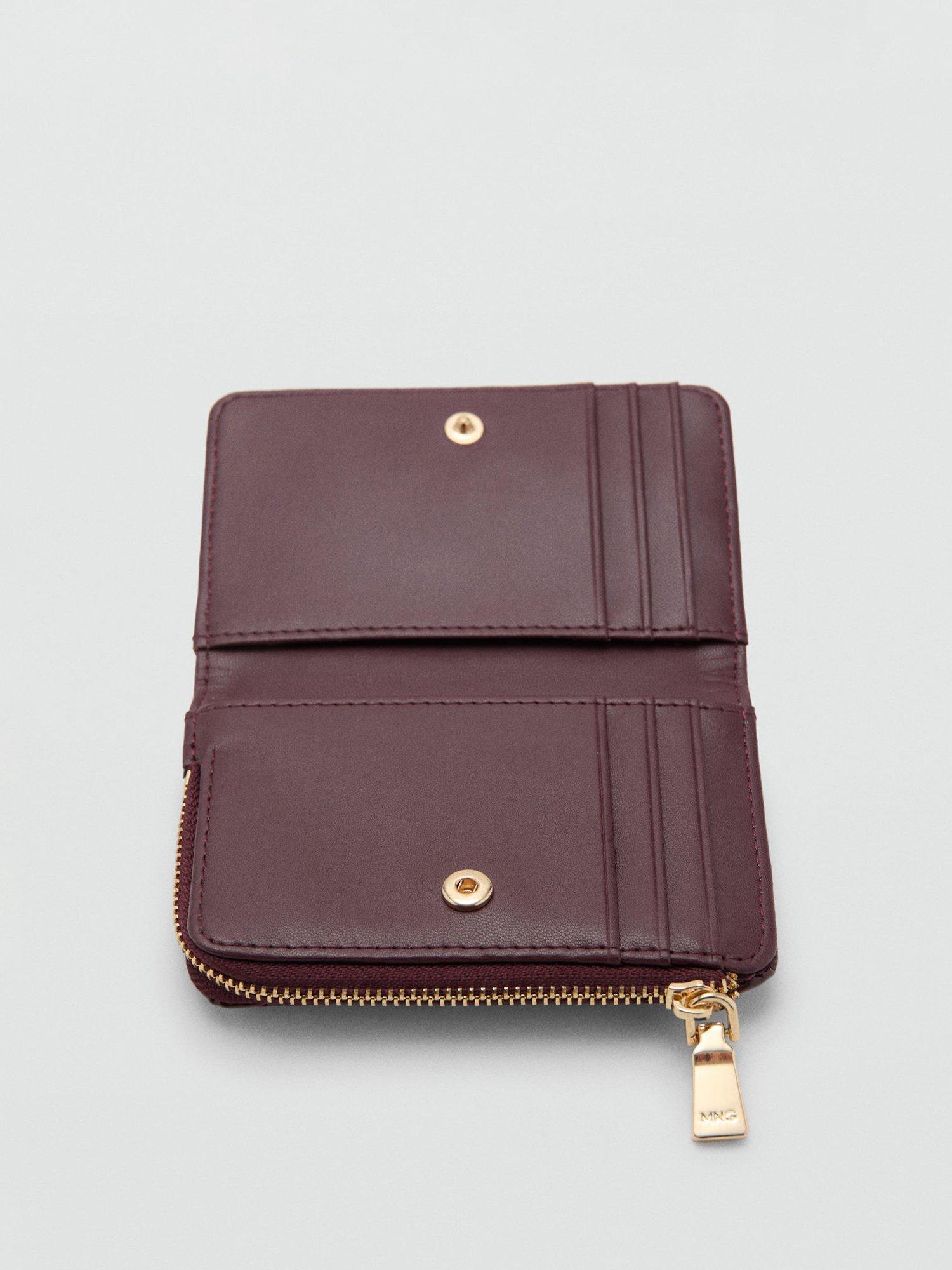 This small, patent leather-effect purse from Mango features six card slots on one side, a zipped pocket, and flap closure with snap button.