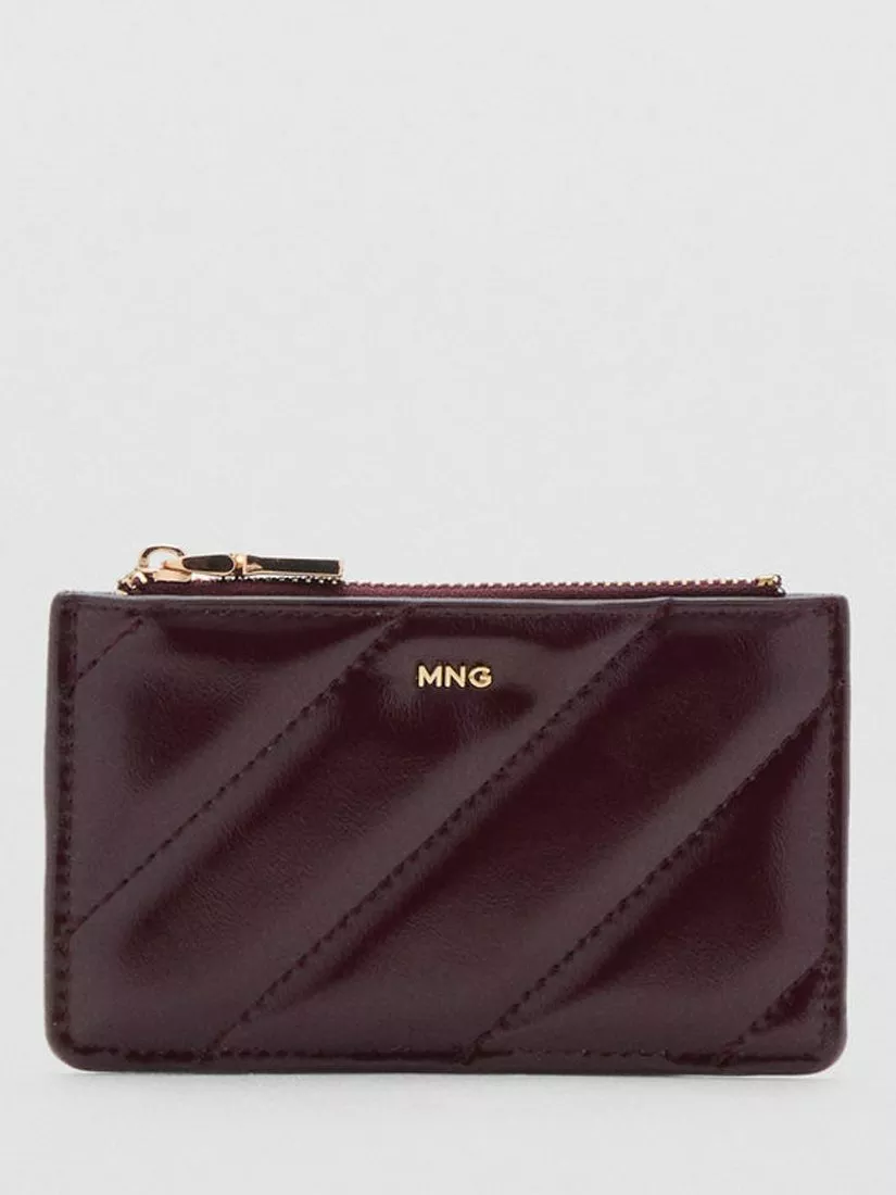 MangoDiagonal Quilted Zipped Purse, Dark Red