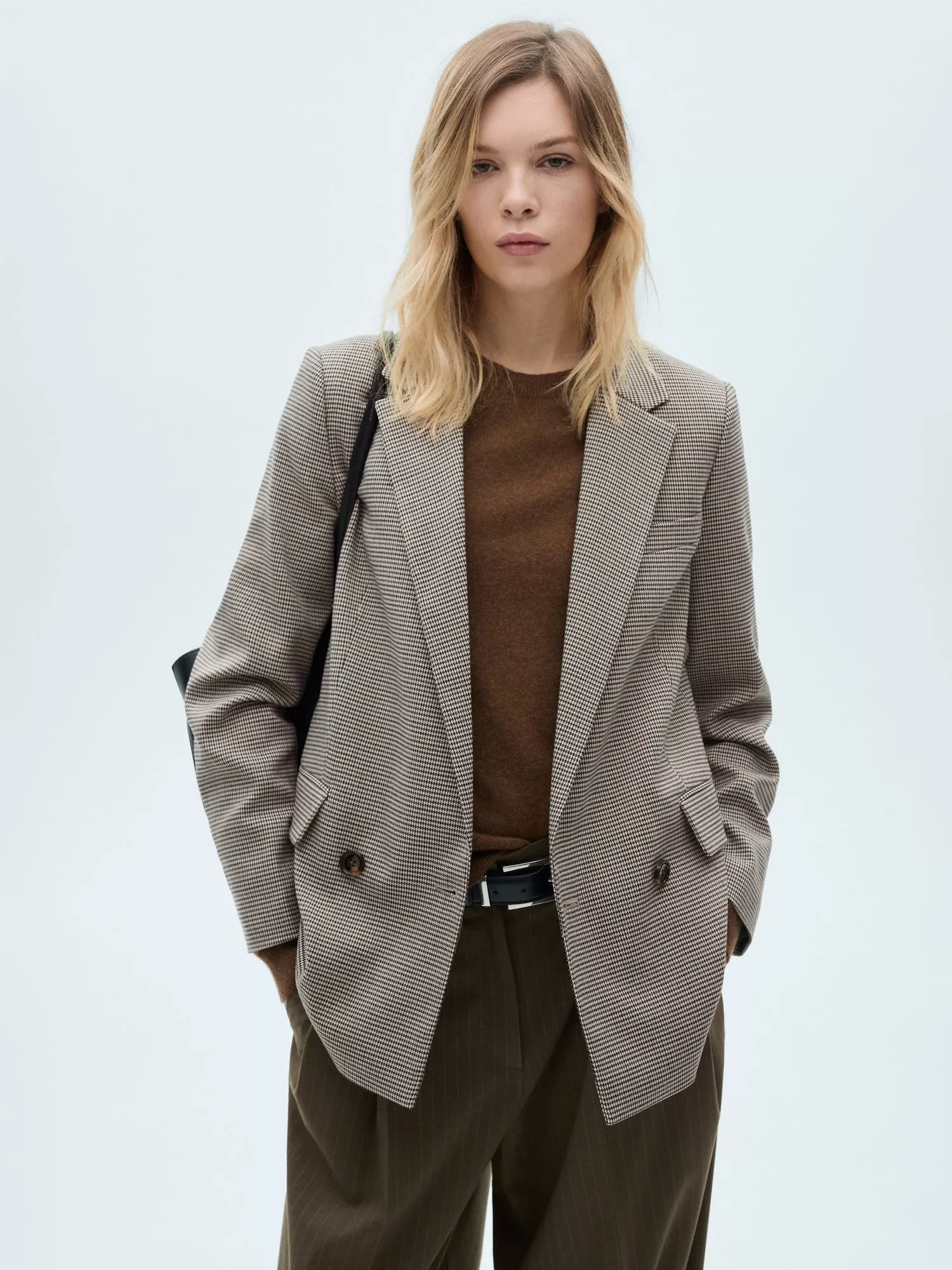 Carefully sketched to a sharp silhouette with classic lapels, this double-breasted blazer from Mango is made from a smooth blended fabric with a neat dogtooth print.