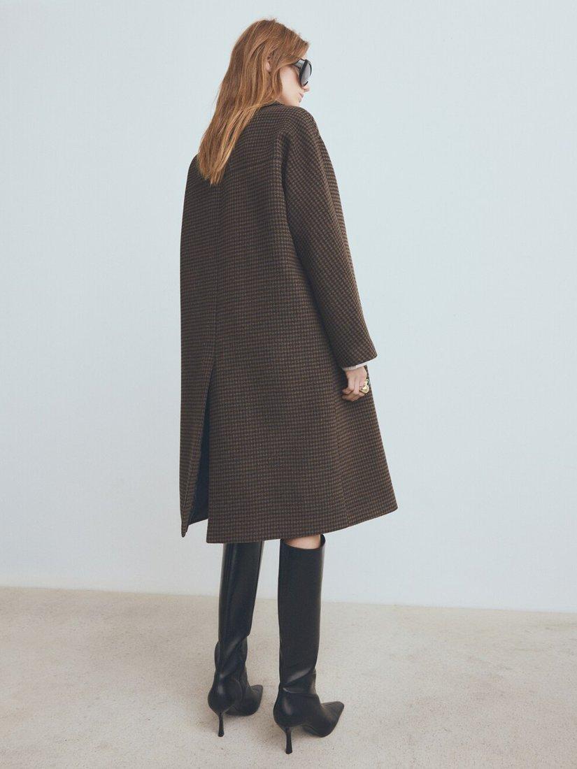 An oversized dogtooth coat by Mango. Designed for comfort and presence, it keeps you warm on busy days and sharp in any crowd. The lined finish and button fastening ensure effortless wear.