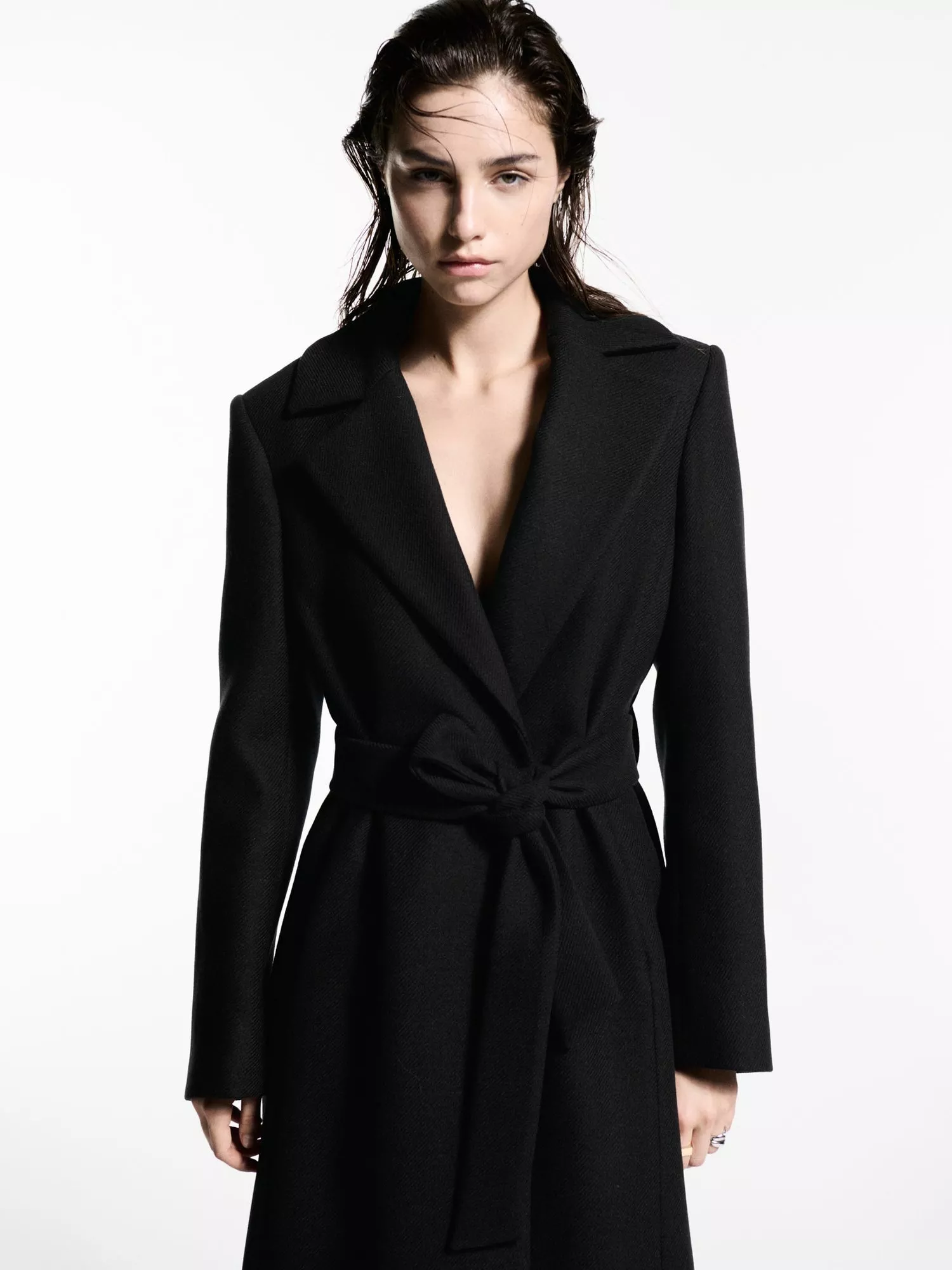 - COMPOSITION: 71% WOOL, 27% POLYAMIDE, 1% POLYESTER, 1% ACRYLIC. LINING: 100% POLYESTER.COLLAR: 100% POLYESTER. PIPING: 100% POLYESTER. BELT: 71% WOOL, 27% POLYAMIDE, 1% POLYESTER, 1% ACRYLIC.