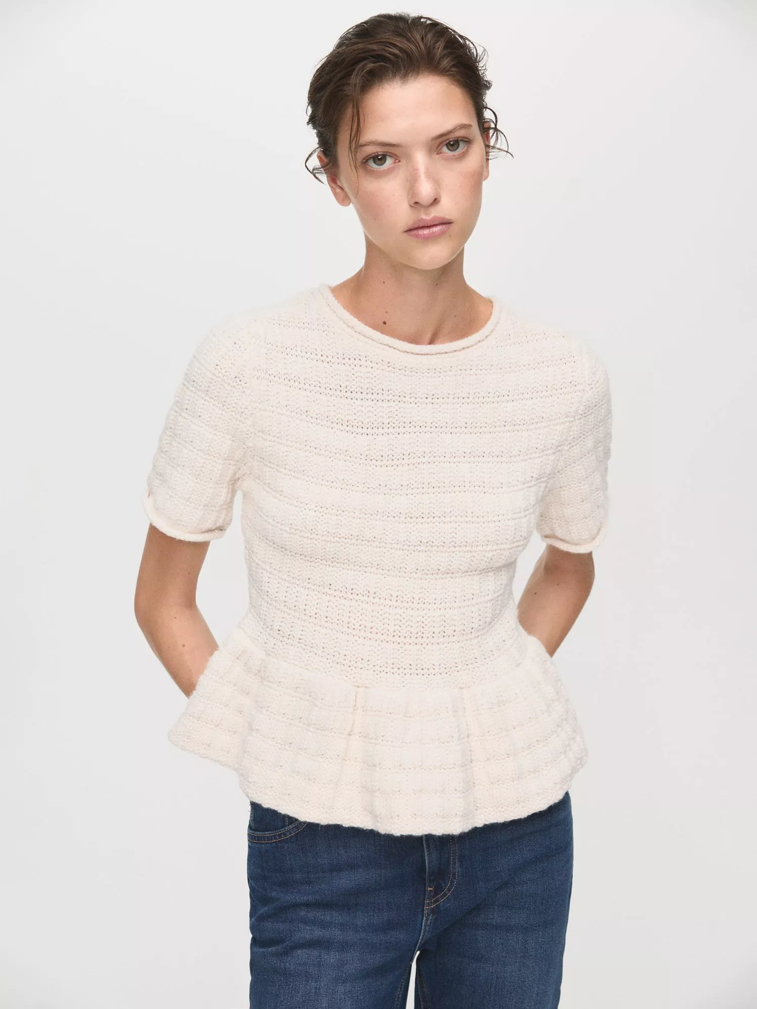 This medium-weight jumper keeps you comfortable while adding texture to your look. The short sleeves and round neck make it a reliable choice for any setting.