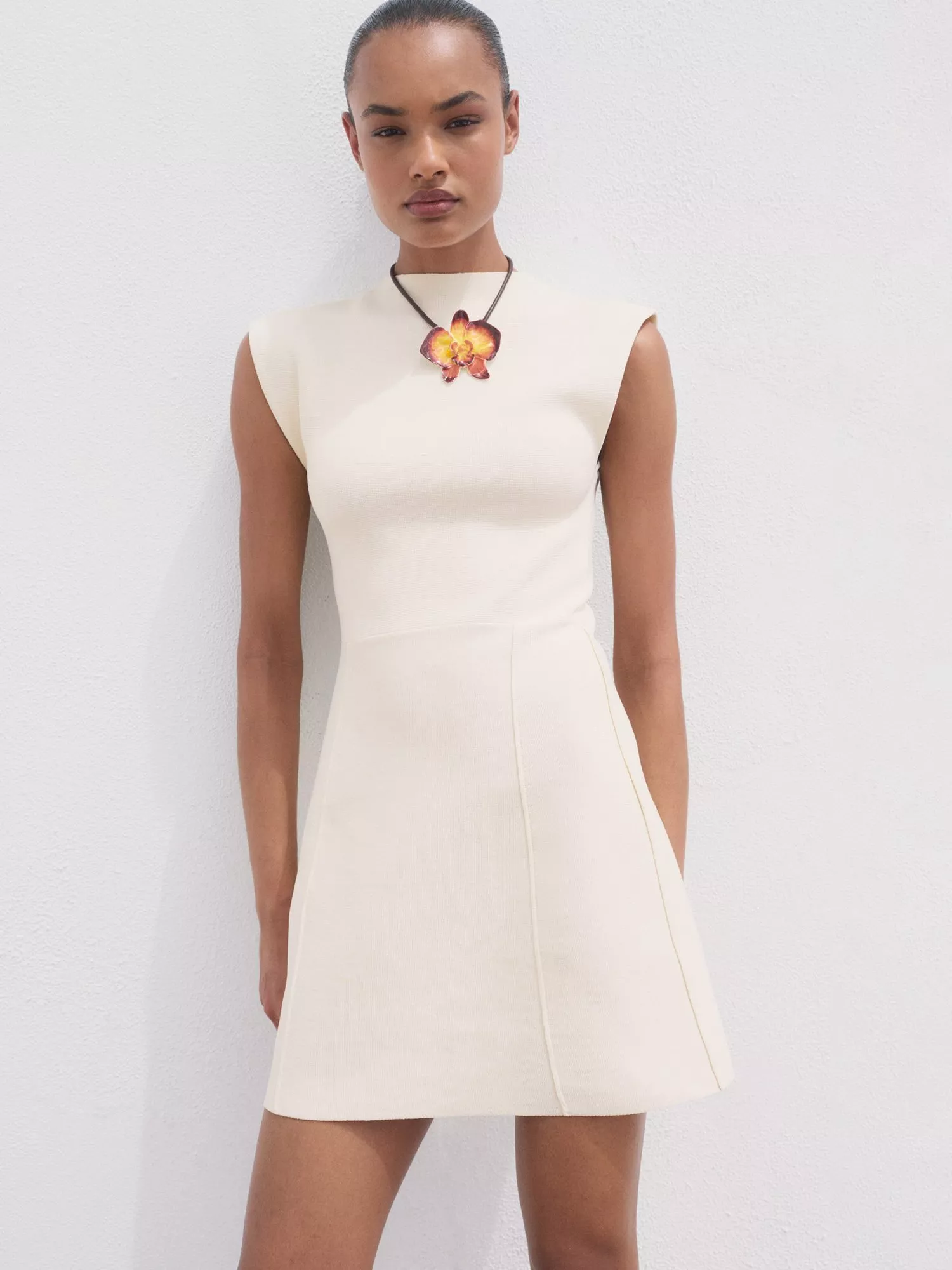 This mini A-line dress features a high neck and cap sleeves, bringing a sharp twist to your daywear. Its streamlined design lets you move freely, offering an easy, polished finish for any plan.