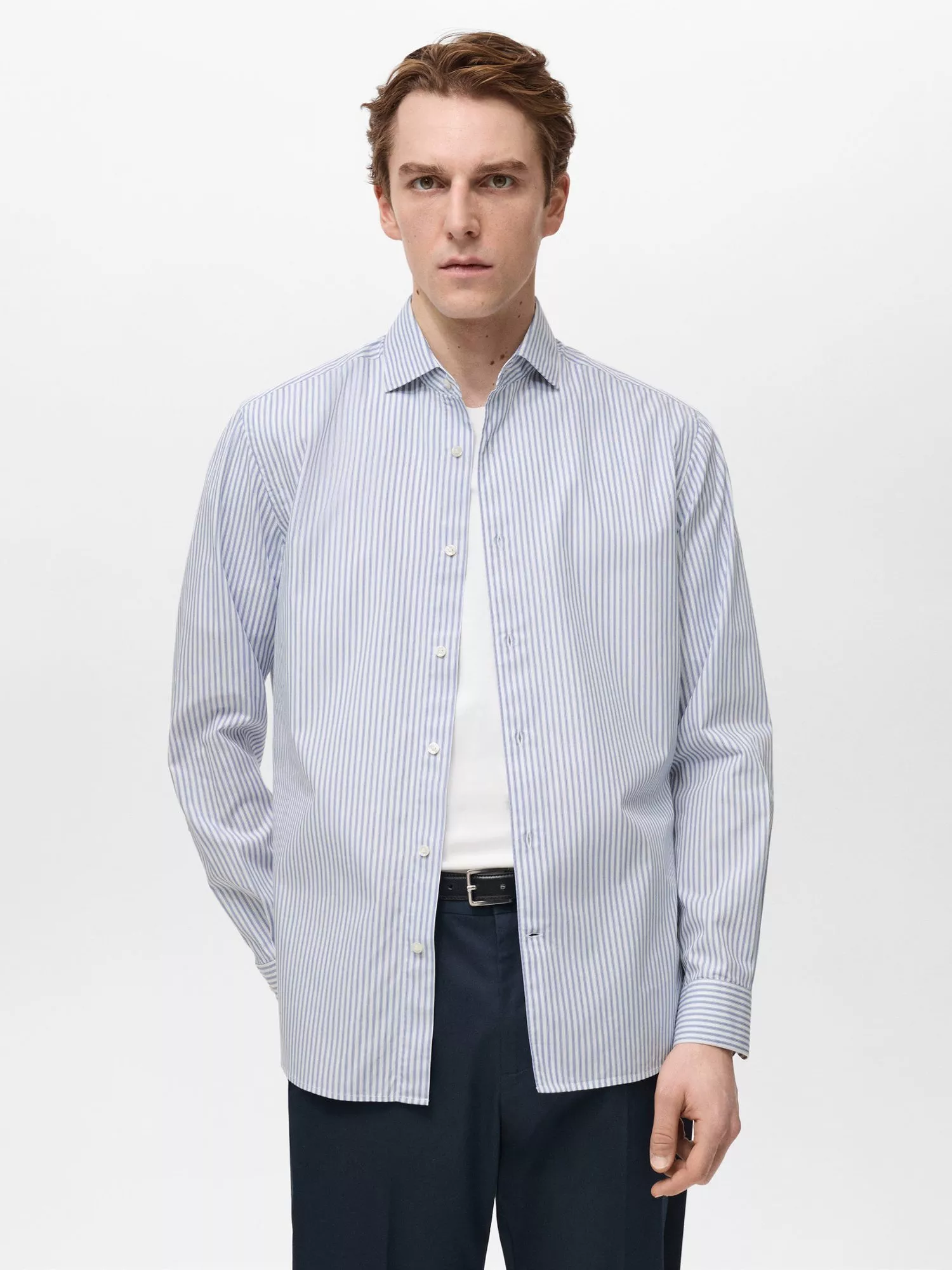 MangoDonosti Cotton Regular Fit Stripe Shirt, Blue/White