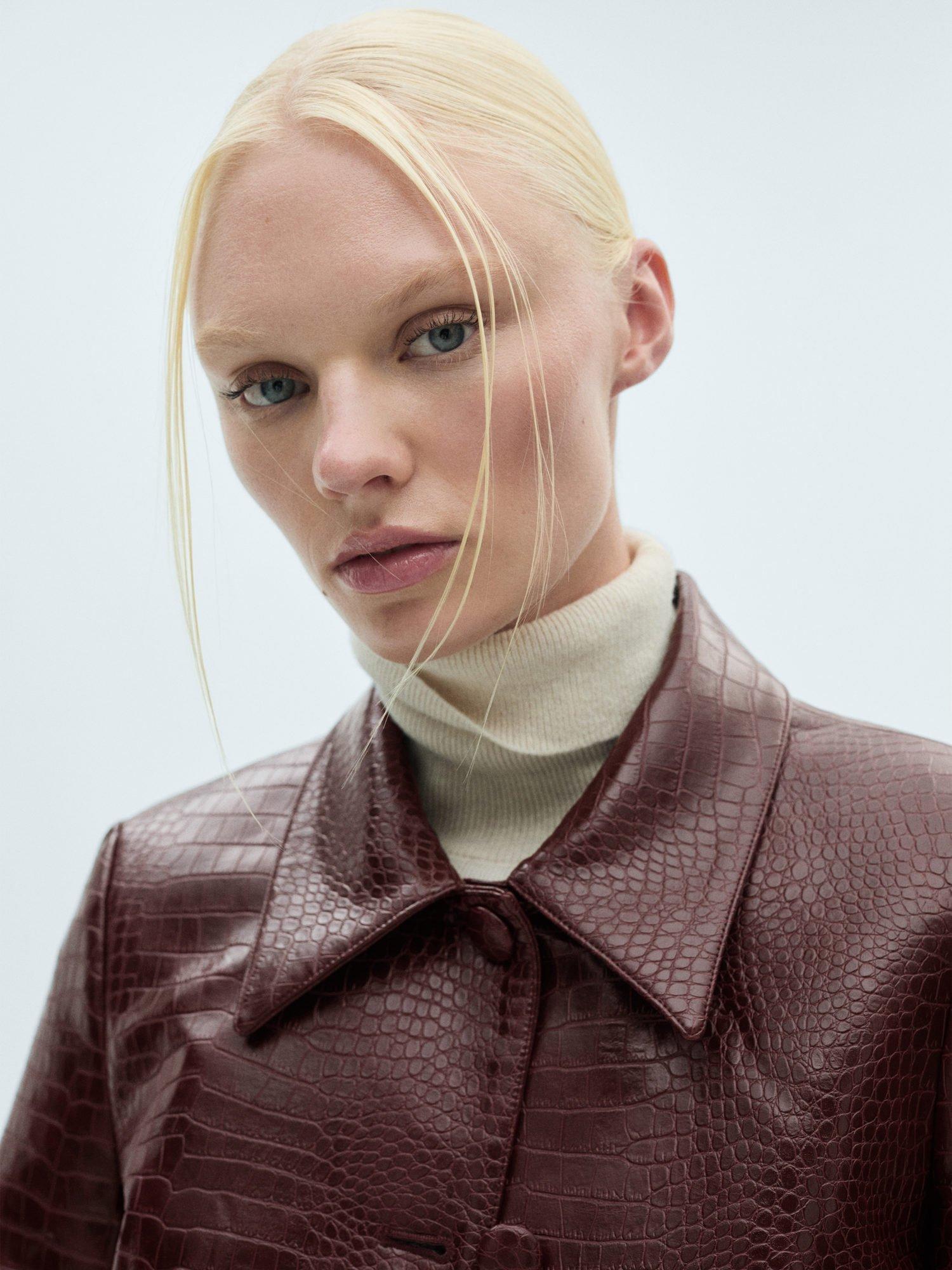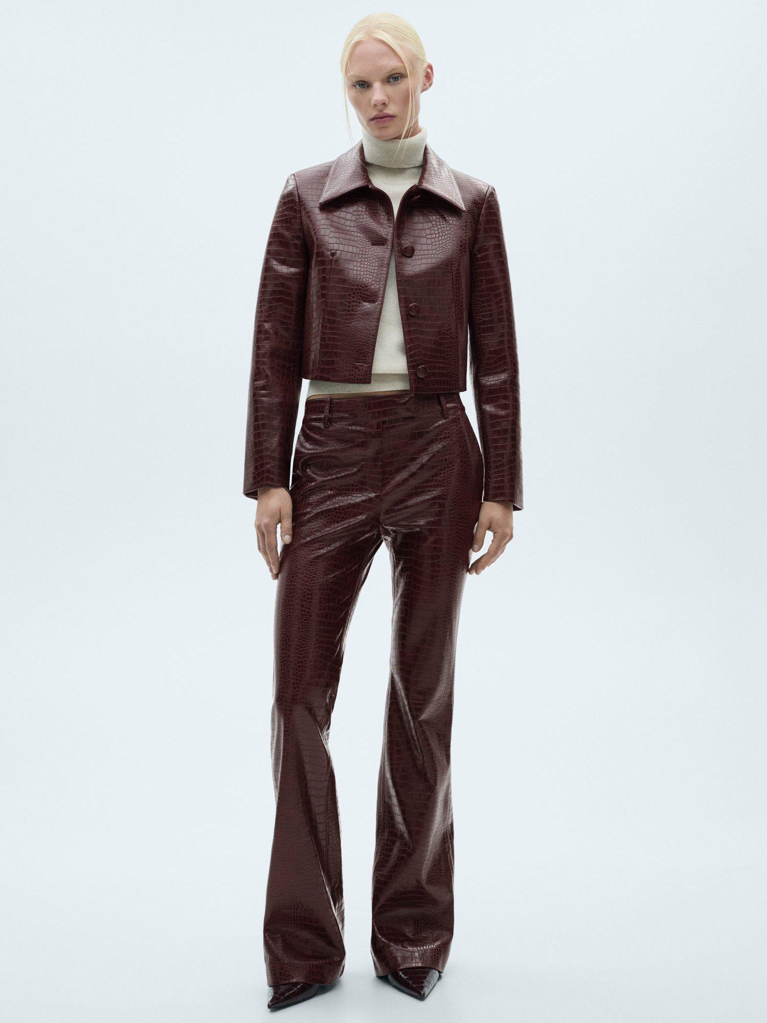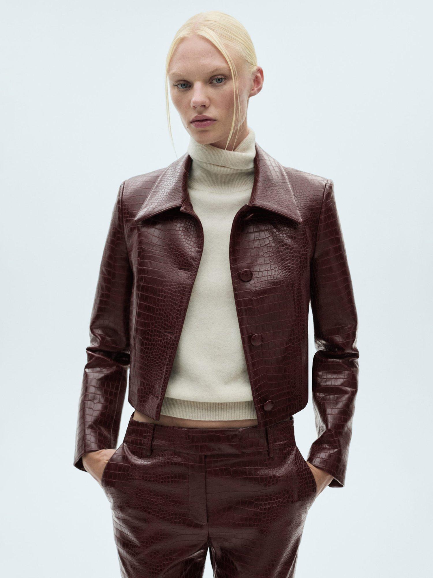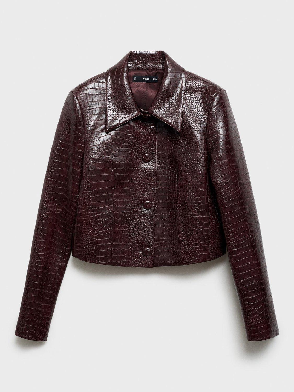 Complementing smart and casual separates, this cropped jacket by Mango provides lightweight wear with its smooth croc-effect textured fabric.