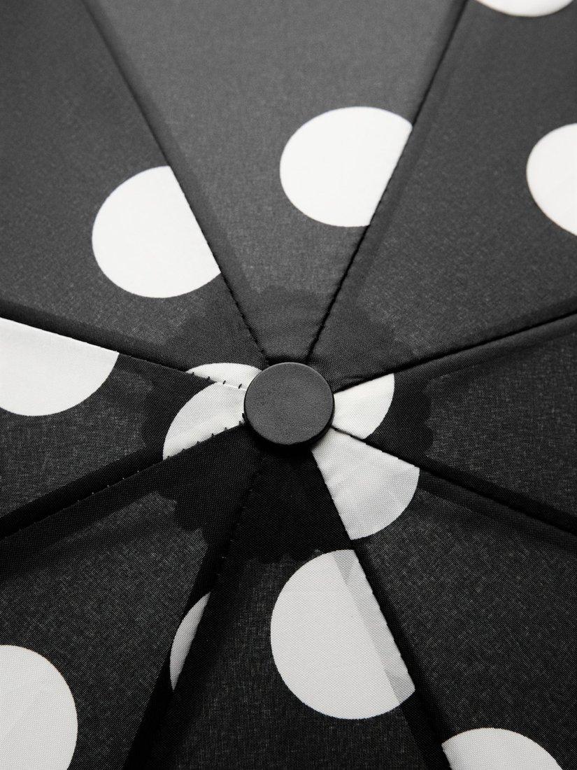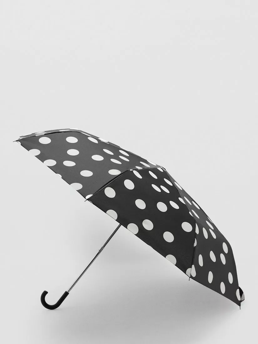 A foldable umbrella in a fun, dot print.