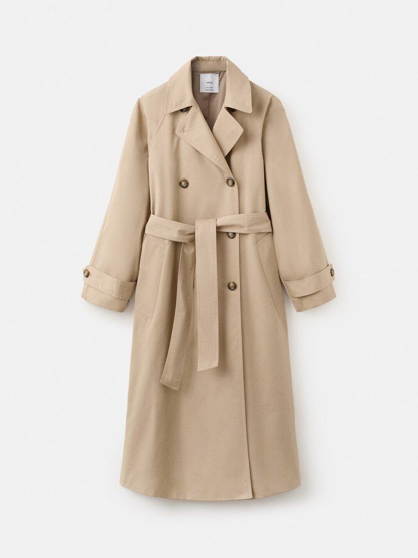 A classic double-breasted trench coat by Mango. Layering effortlessly over your looks, its clever cotton blend design keeps you comfortable with a smart collar and practical buttons. Finished with a self-tie waist belt.