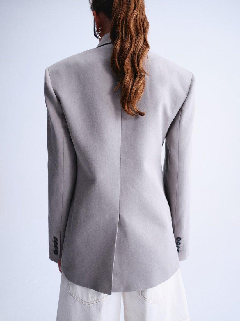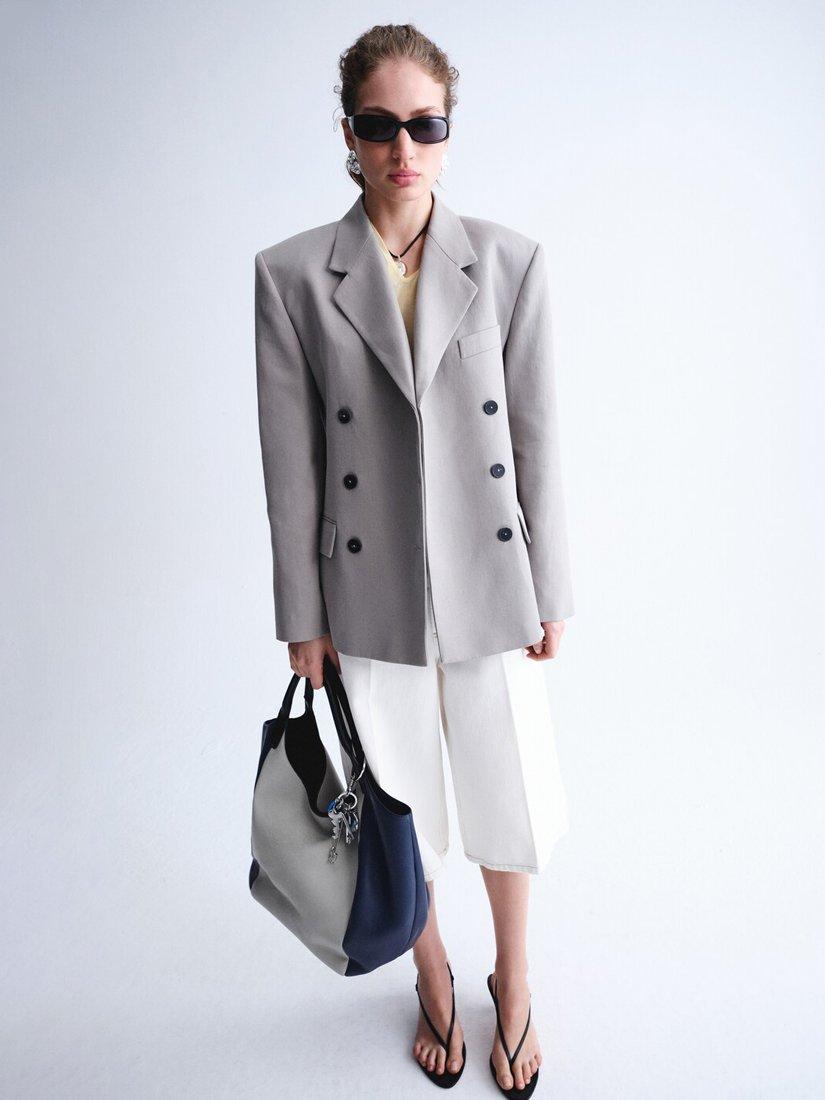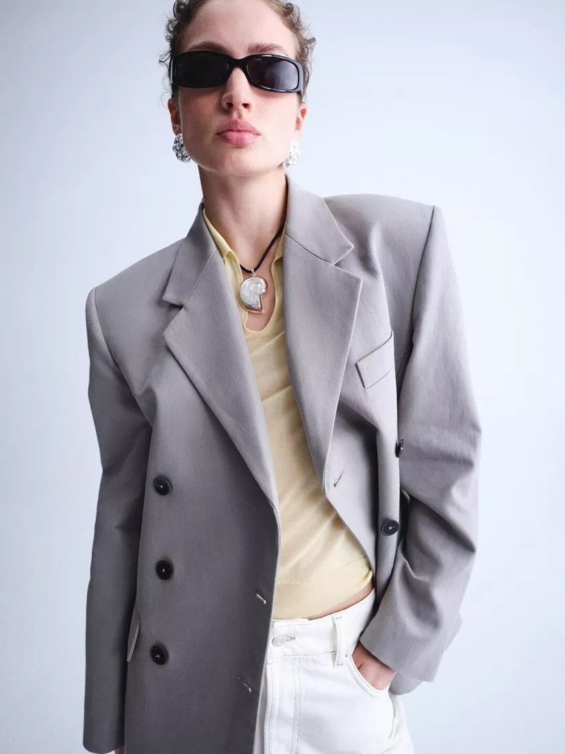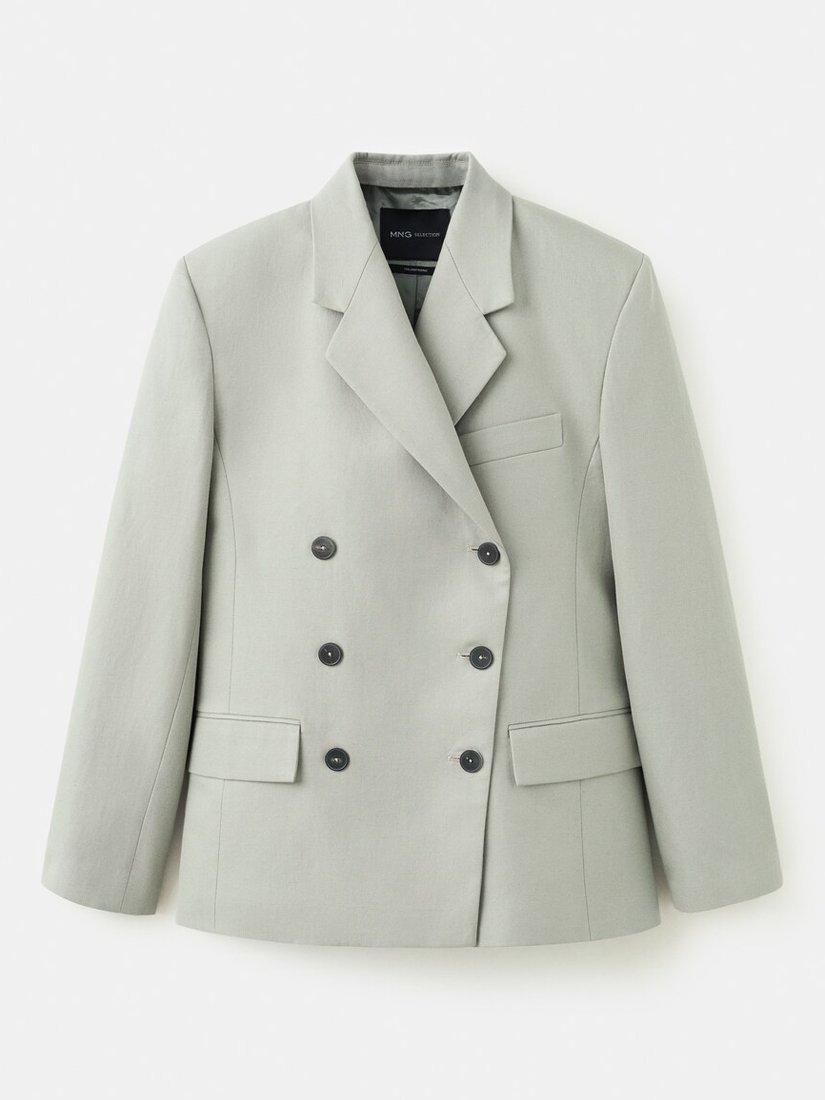 Tailored for smart impact, this double-breasted blazer combines the crisp structure of cotton with breathable linen. Buttoned cuffs and a neat collar keep details refined.