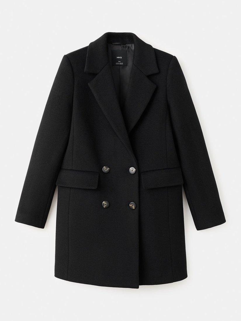 A longline double-breasted overcoat by Mango. The regular cut and button fastening offer a sharp look, while the wool blend delivers lasting comfort. Smart for everyday or special outings.