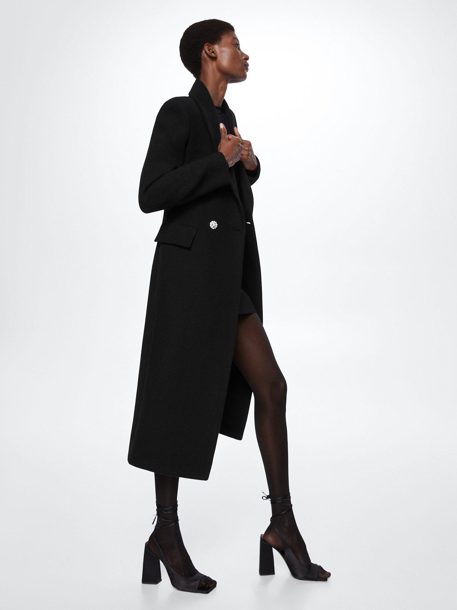 Celebrating minimalist silhouettes, this coat from Mango gives plenty of coverage with its longer-length hem.