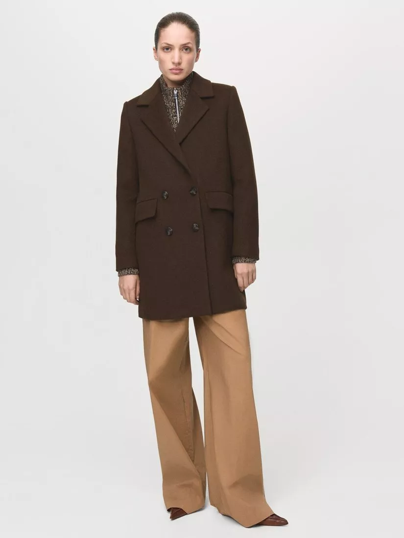 MangoDouble Breasted Wool Blend Coat, Chocolate
