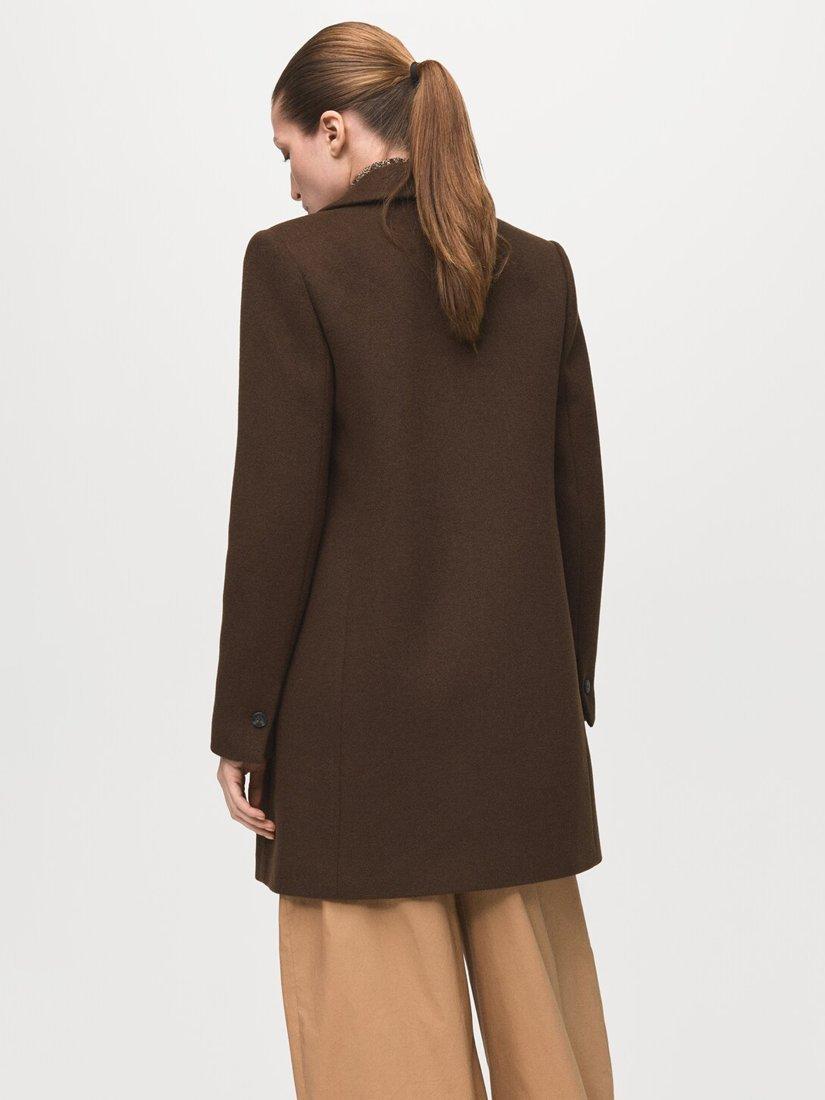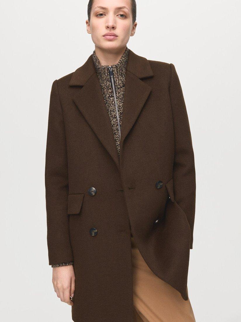 A regular-length overcoat with a sculpted double-breasted front, designed for your daily moments. The wool blend keeps you cosy while long sleeves and a sharp collar offer a smart touch. A practical choice that suits every plan.