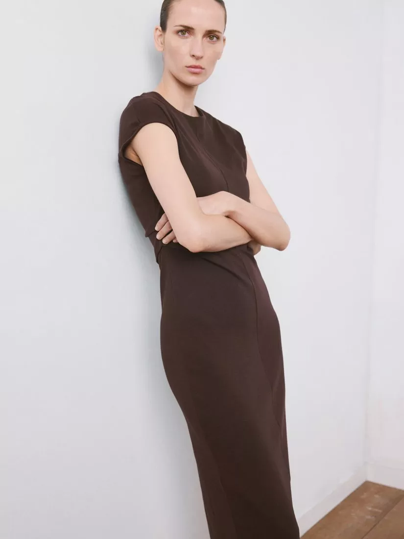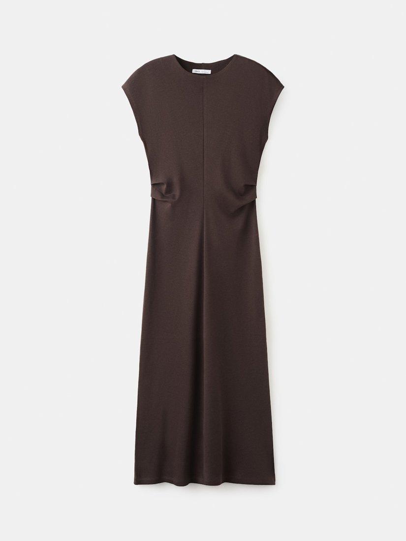 MangoDrape Detail Midi Dress, Brown
