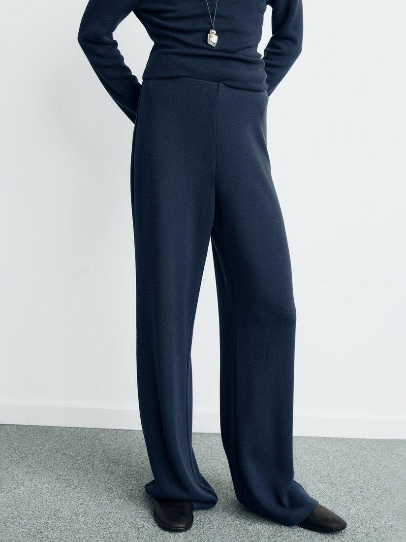 MangoElastic Waist Straight Trousers, Navy