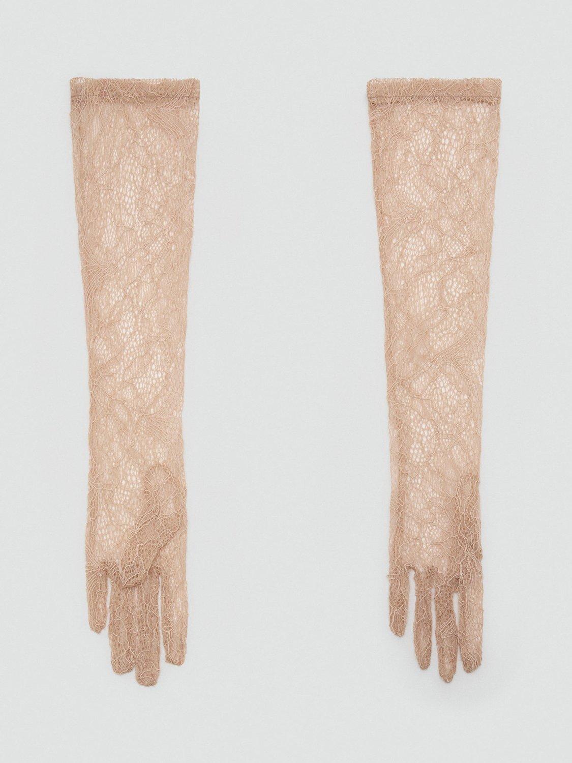 Elbow-length lace gloves that are both elegant and distinctly feminine.