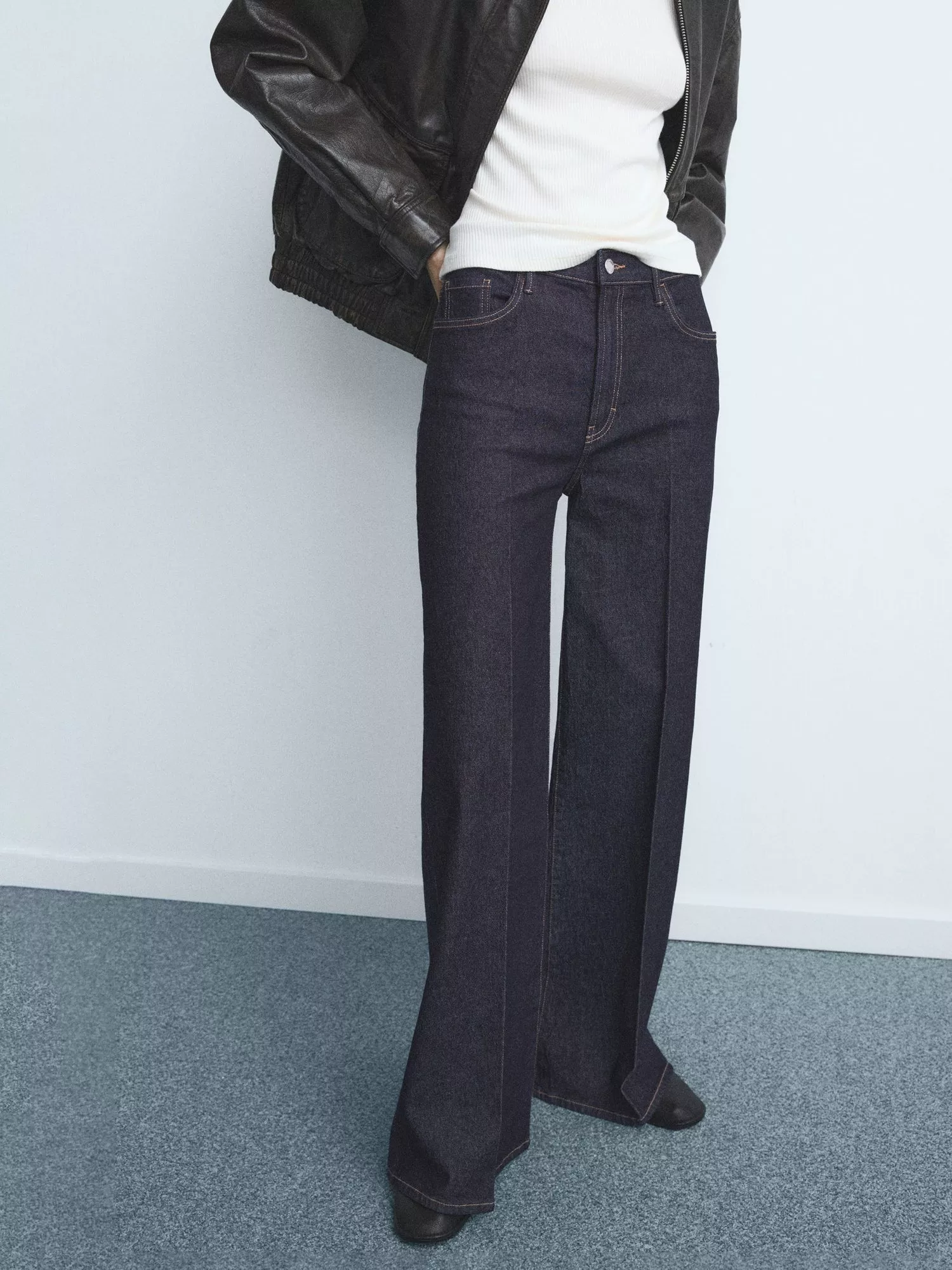 A pair of wide leg jeans from Mango. Sculpted from a stretchy cotton blend with a high rise and a classic button and zip fly, they fall to longer-length hems.