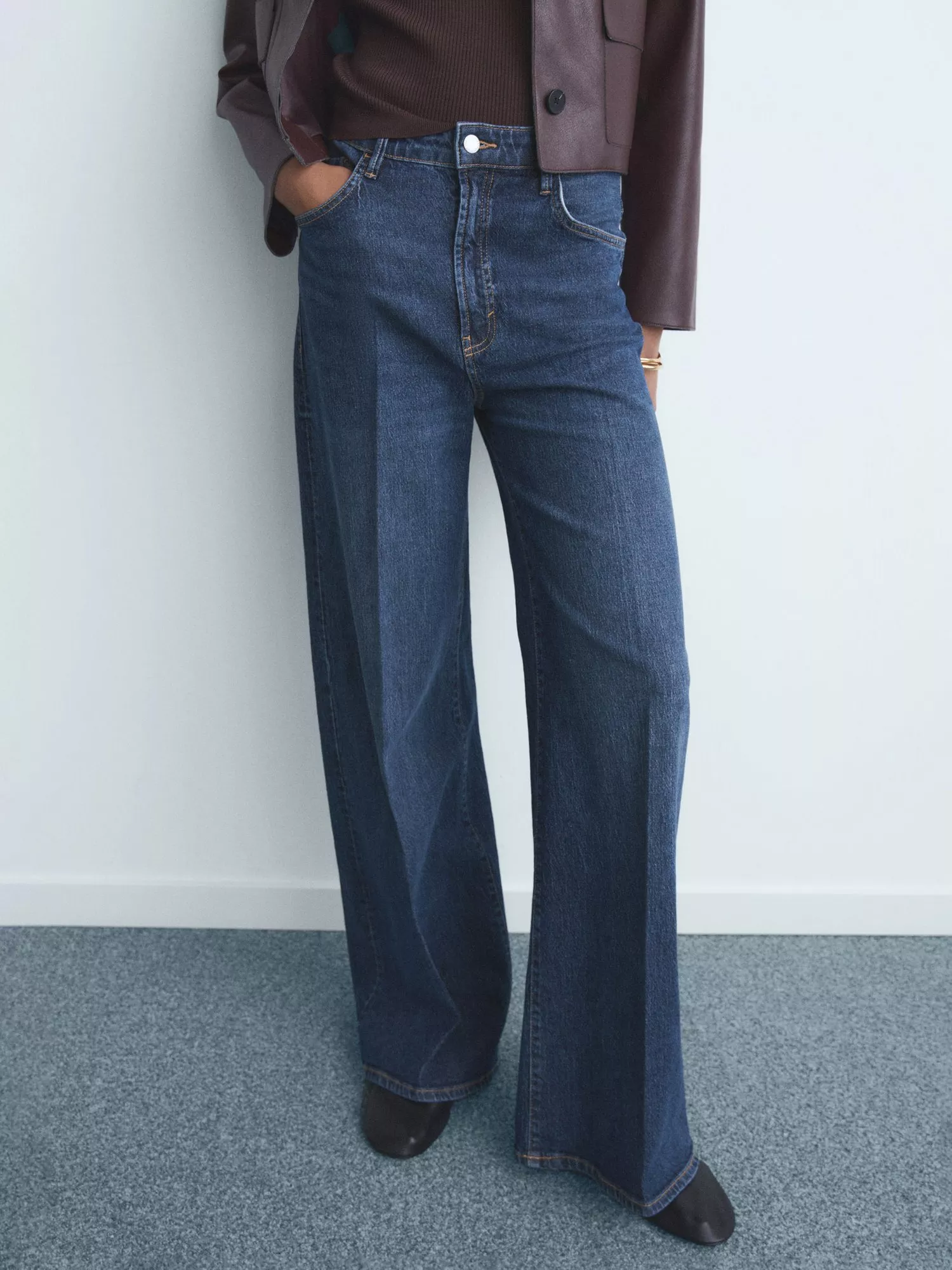 A pair of characteristically wide legged jeans from Mango. Sculpted from denim with a comfortable mid rise and a zip fly, they fall to a regular length.