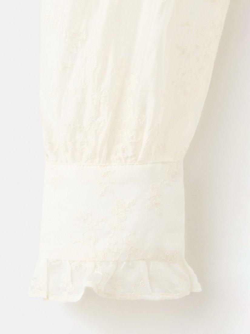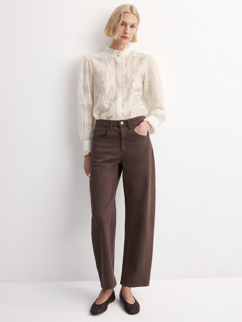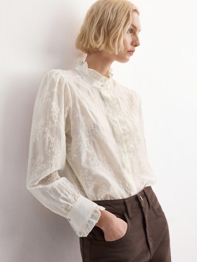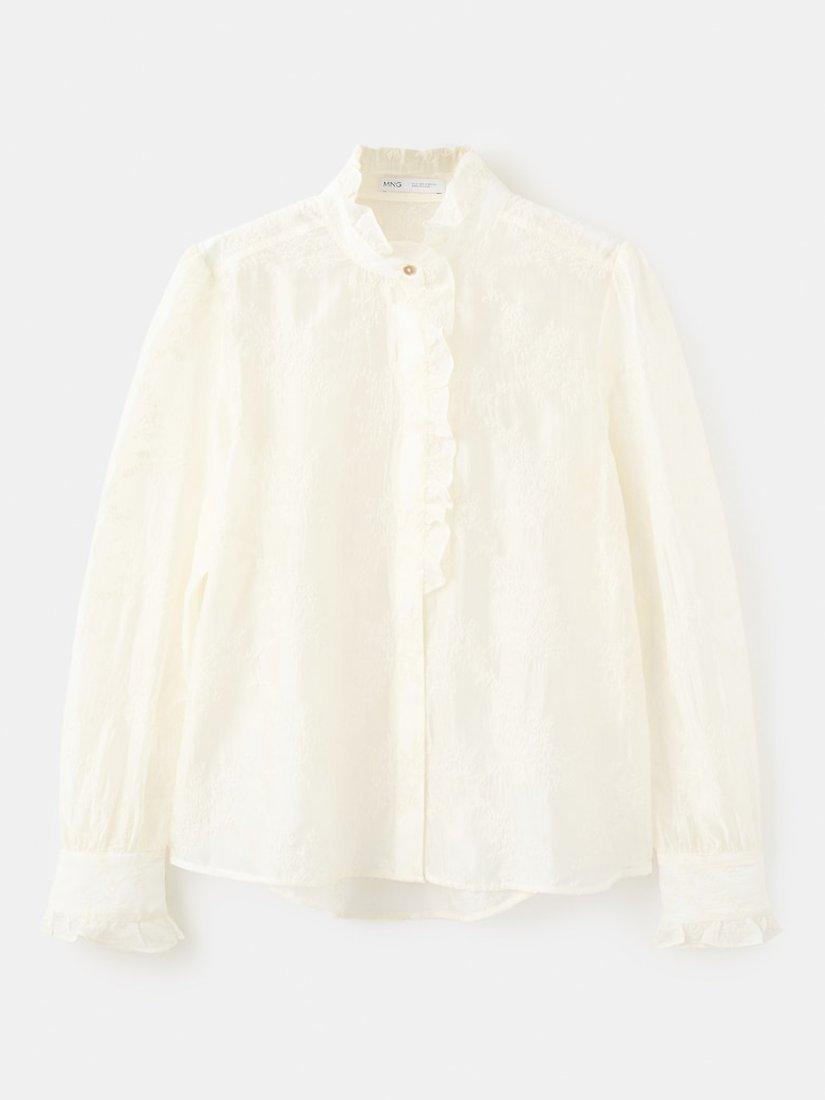 A blouse by Mango. Featuring a mandarin collar and long billowy sleeves, it's intricately embroidered with pretty florals. Your go-to for sun-soaked summer moments.