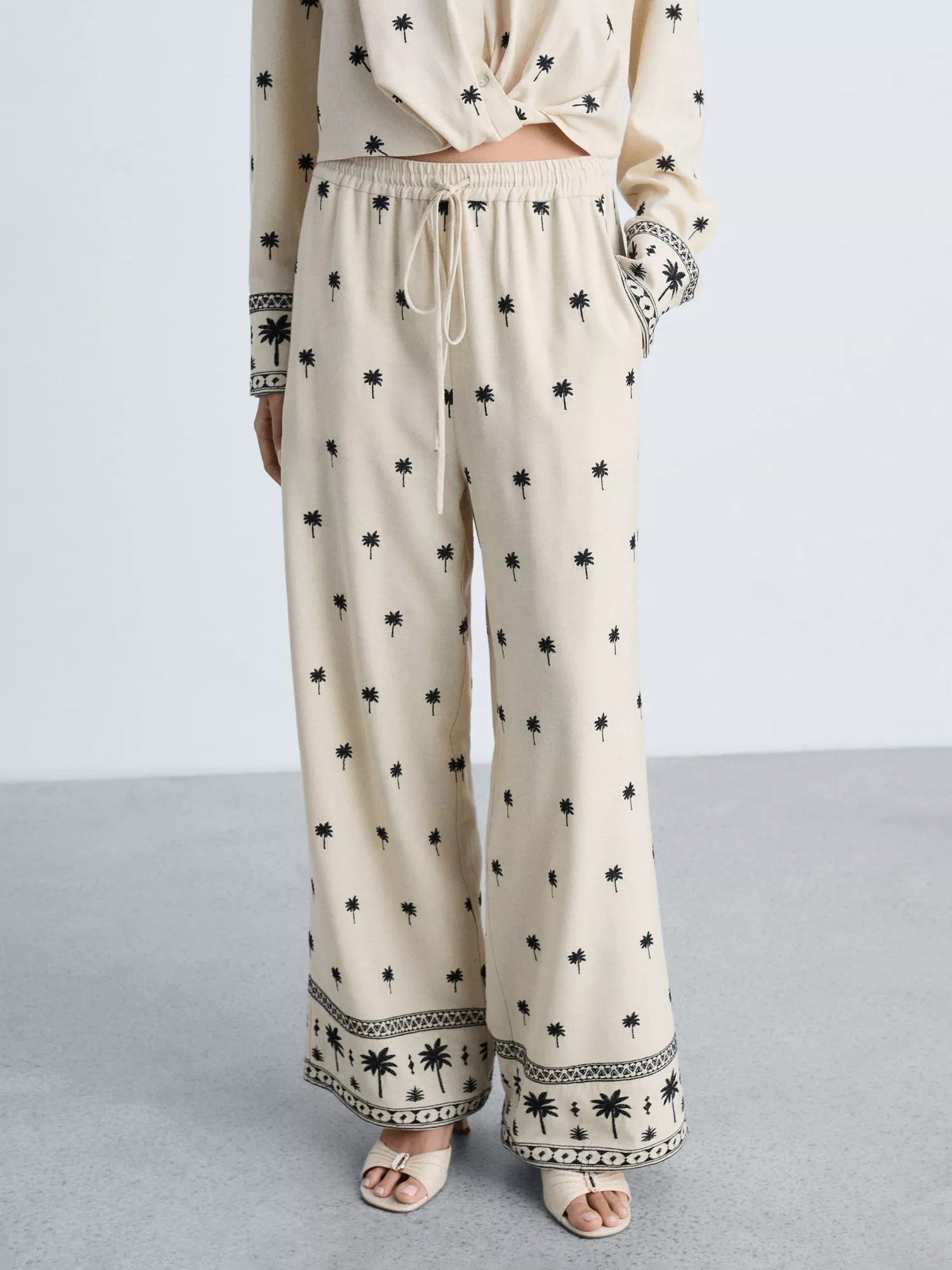 Breezy in a linen blend, this pair of palm print trousers from Mango sit naturally on the hips and are cut to a straight shape.