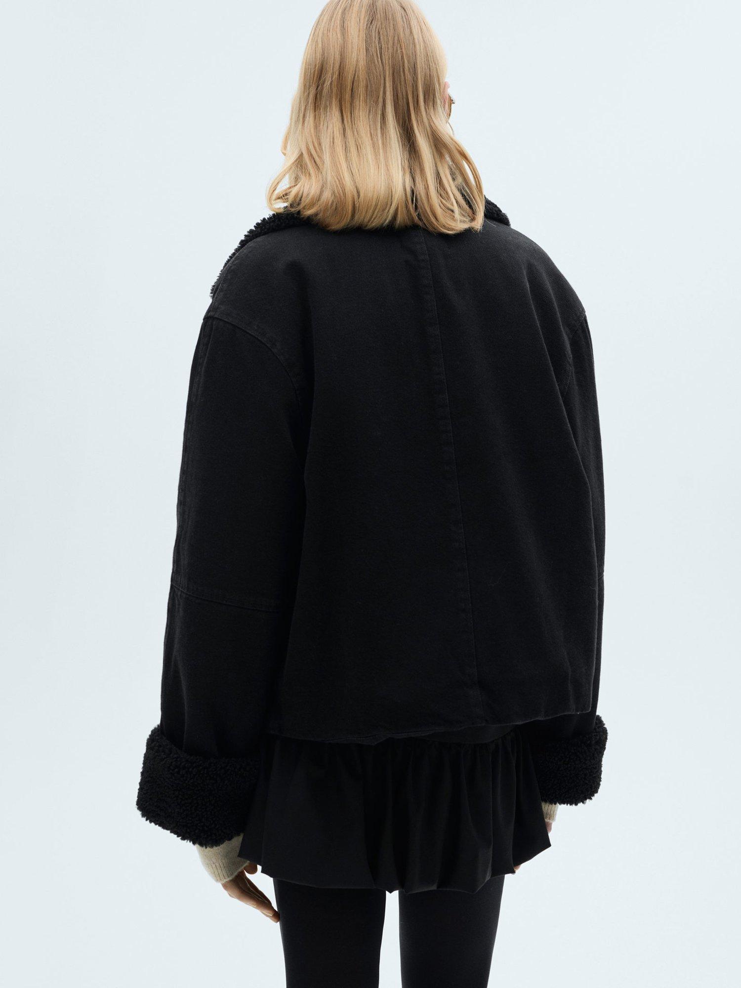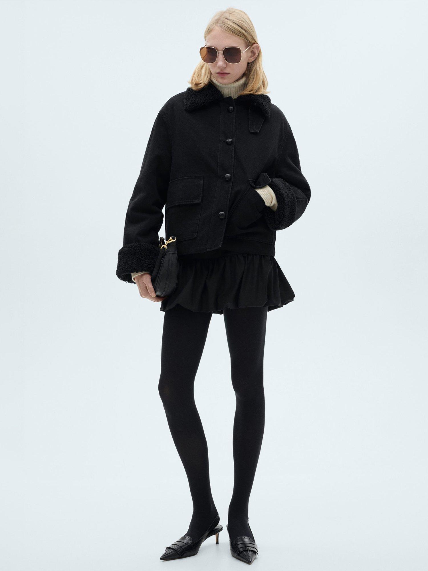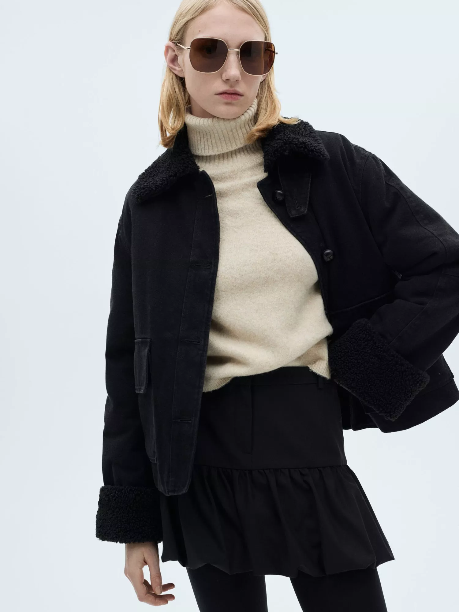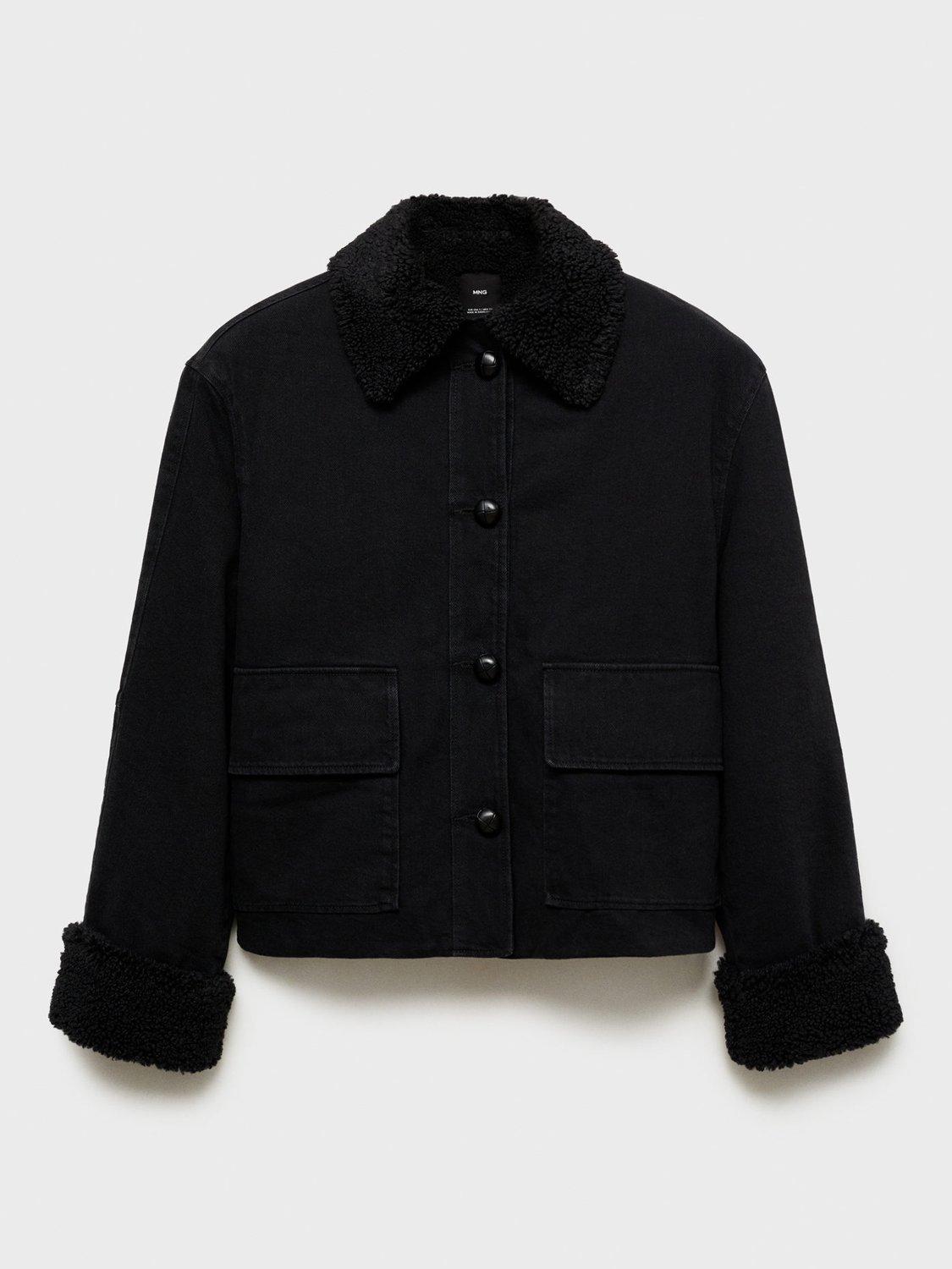 In a timeless style that goes with anything, this denim jacket by Mango features a faux shearling collar and lining, and a boxy oversized fit.