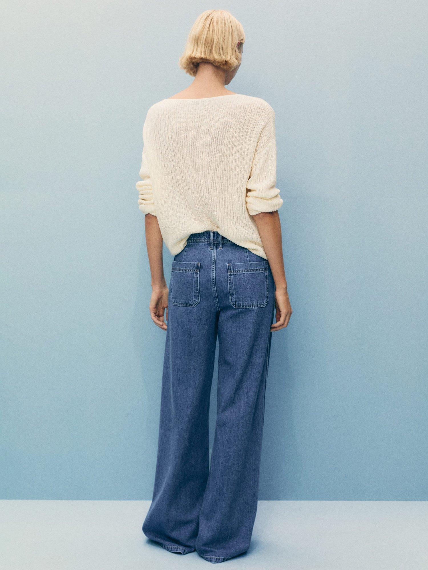 Engineered for comfort and confidence, these wide-leg jeans surprise with clever details and effortless fit. Their pure cotton fabric and mid-rise cut make every day distinctive and authentically refreshing in every sense.