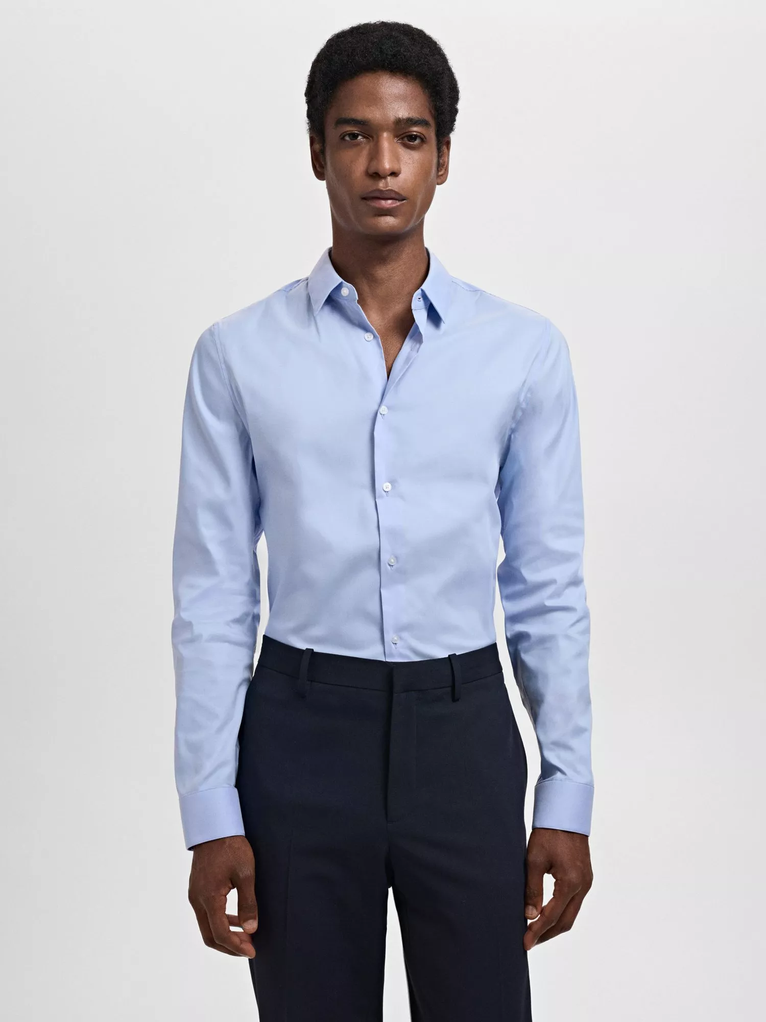 Long-sleeve cotton blend shirt. Its slim cut and classic collar provide all-day comfort, letting you move confidently from meetings to after-hours plans. Easy to style, smart, and ready for anything.