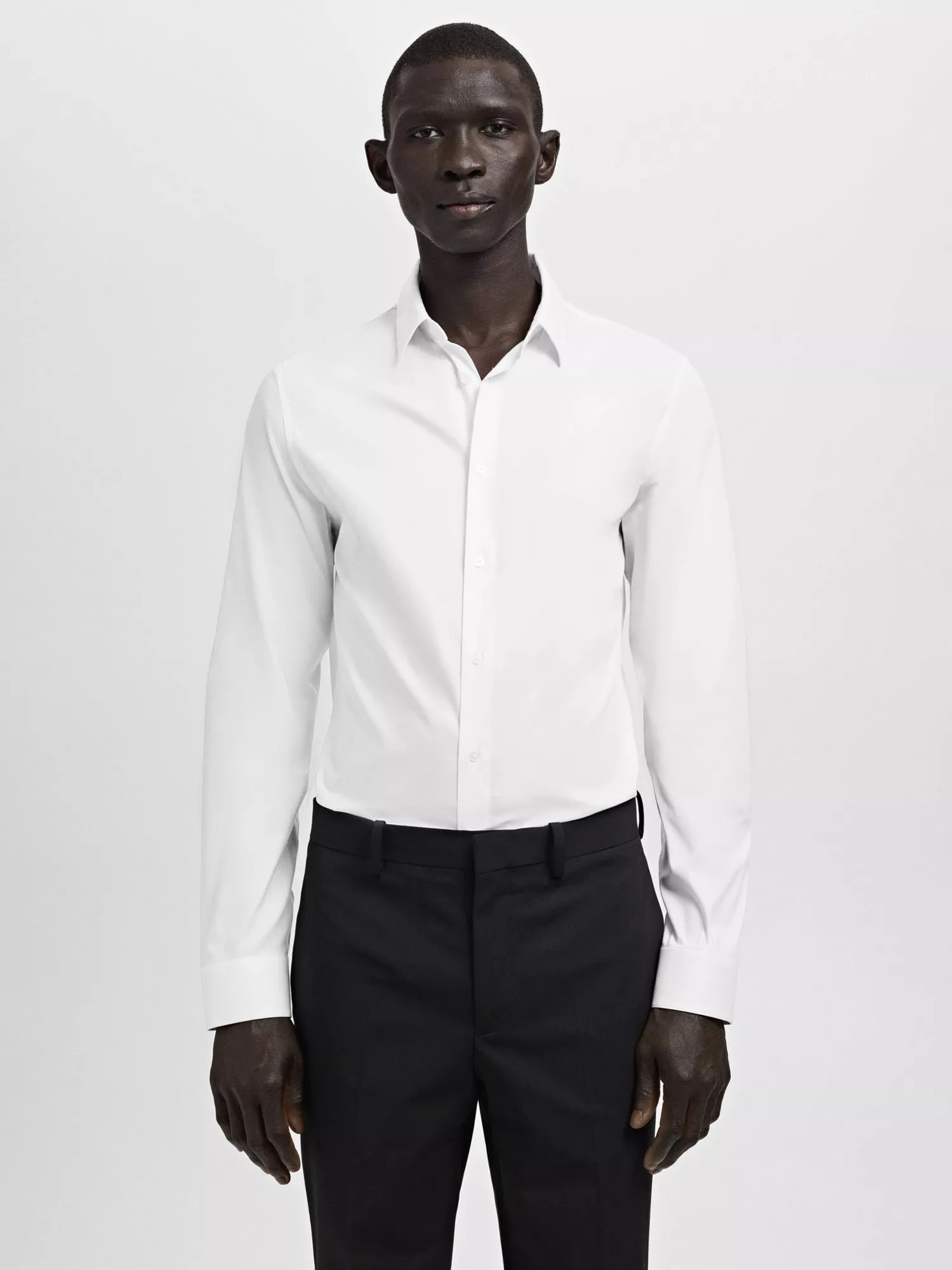 A slim-fit shirt made from a lightweight cotton blend with stretch for comfort. It features a classic collar, a button-down front and long sleeves with buttoned cuffs.