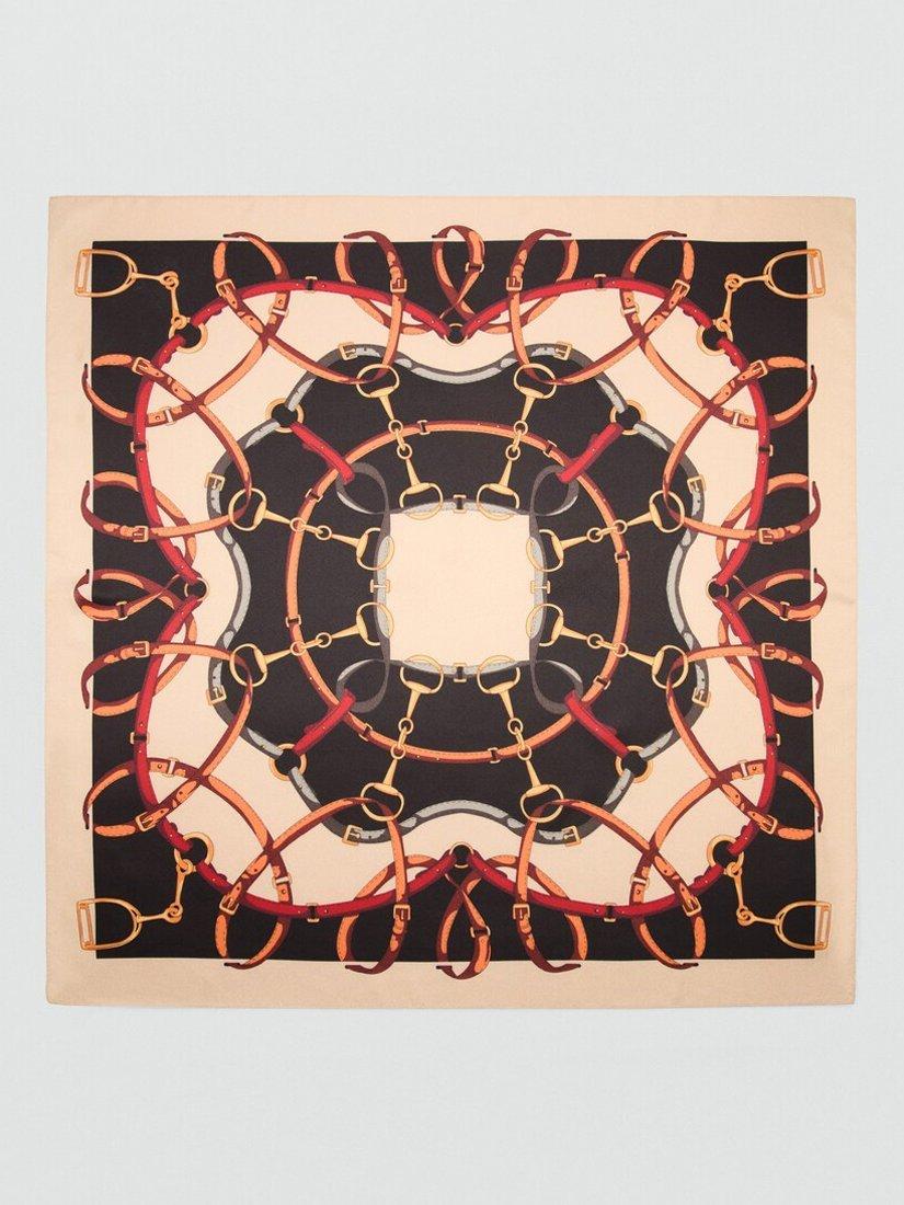 MangoEquestrian Motif Square Scarf, Beige