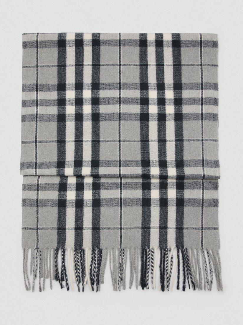 A warming accessory detailed with a characterful check pattern and delicate fringing.