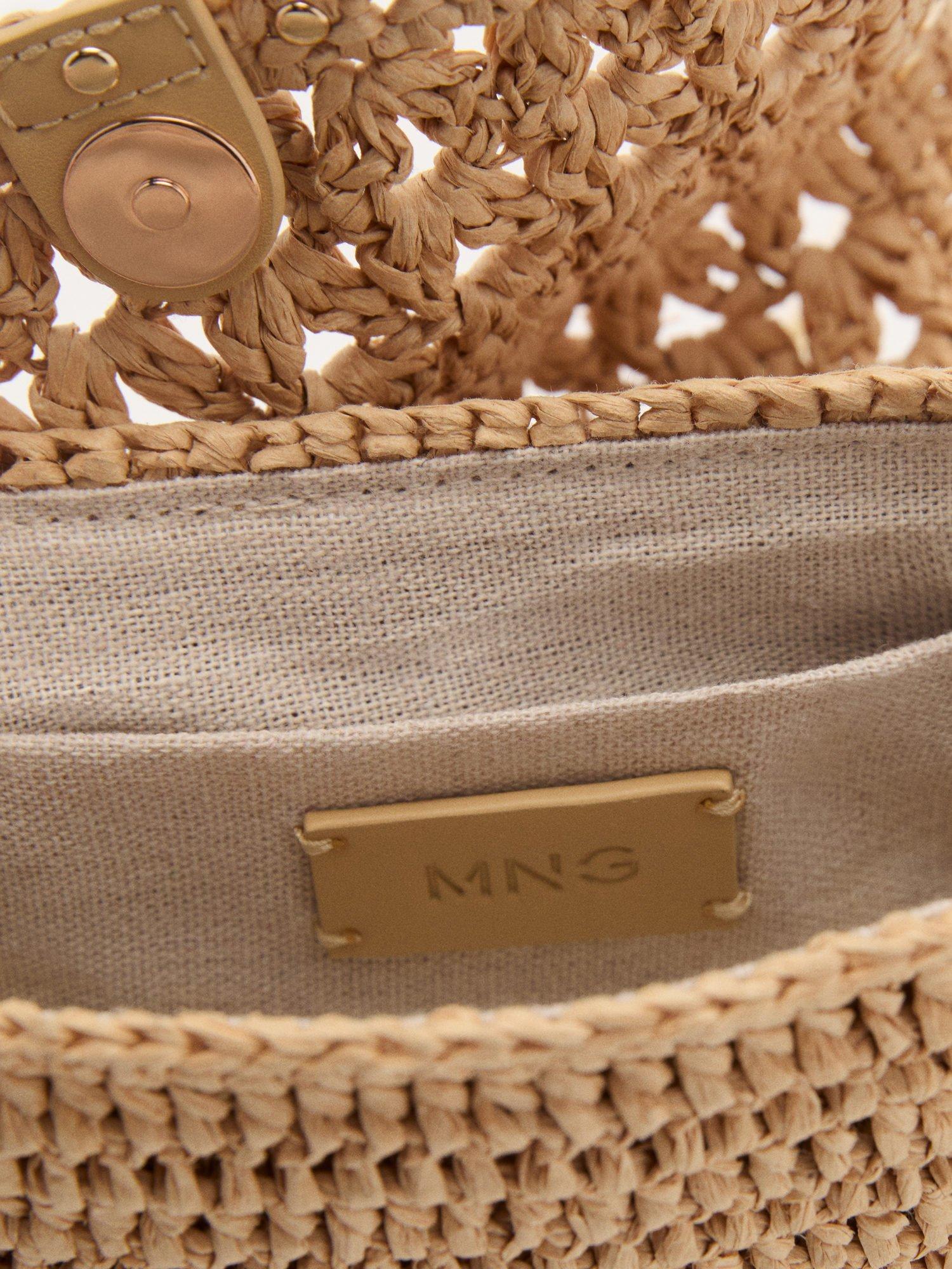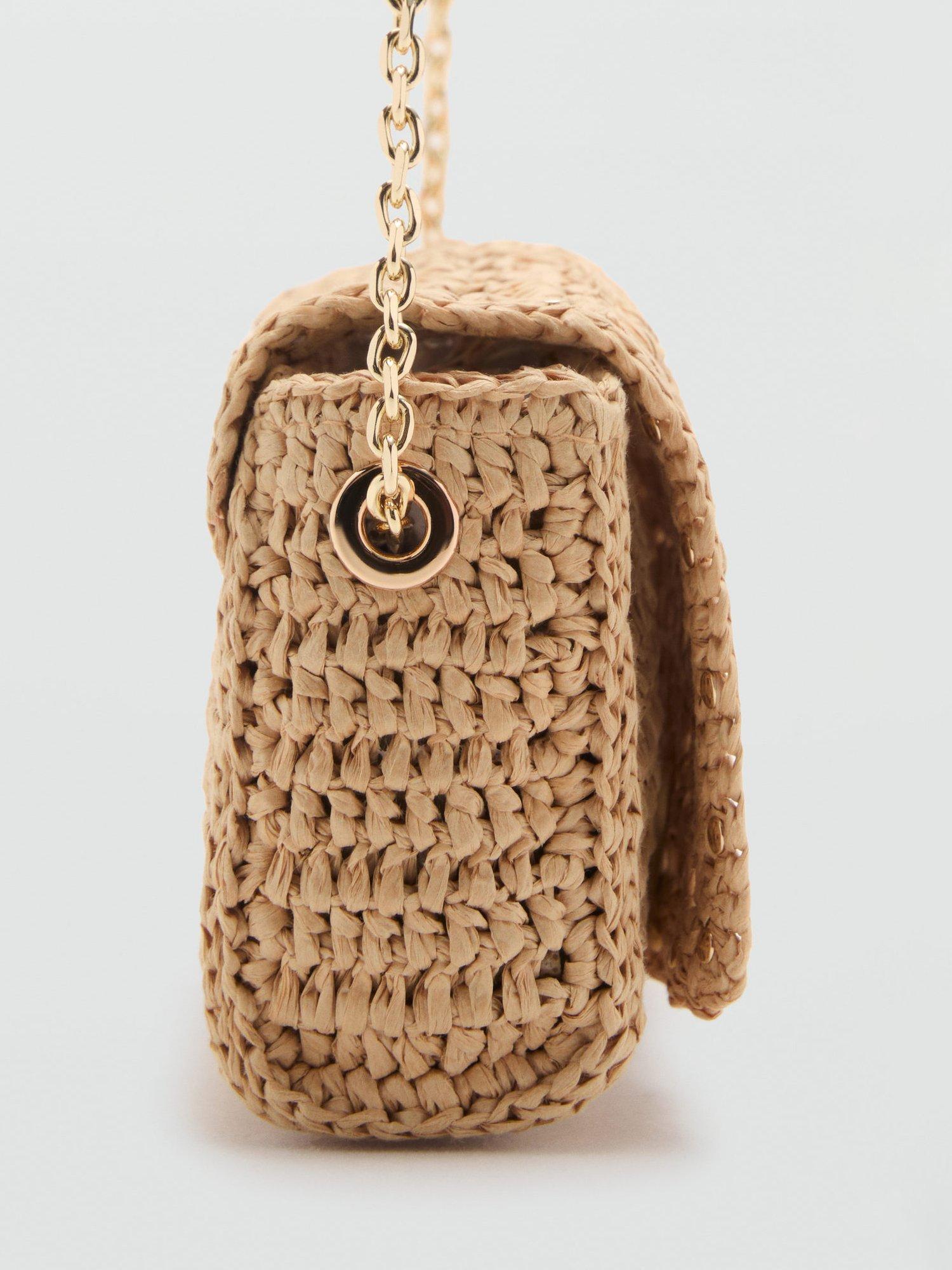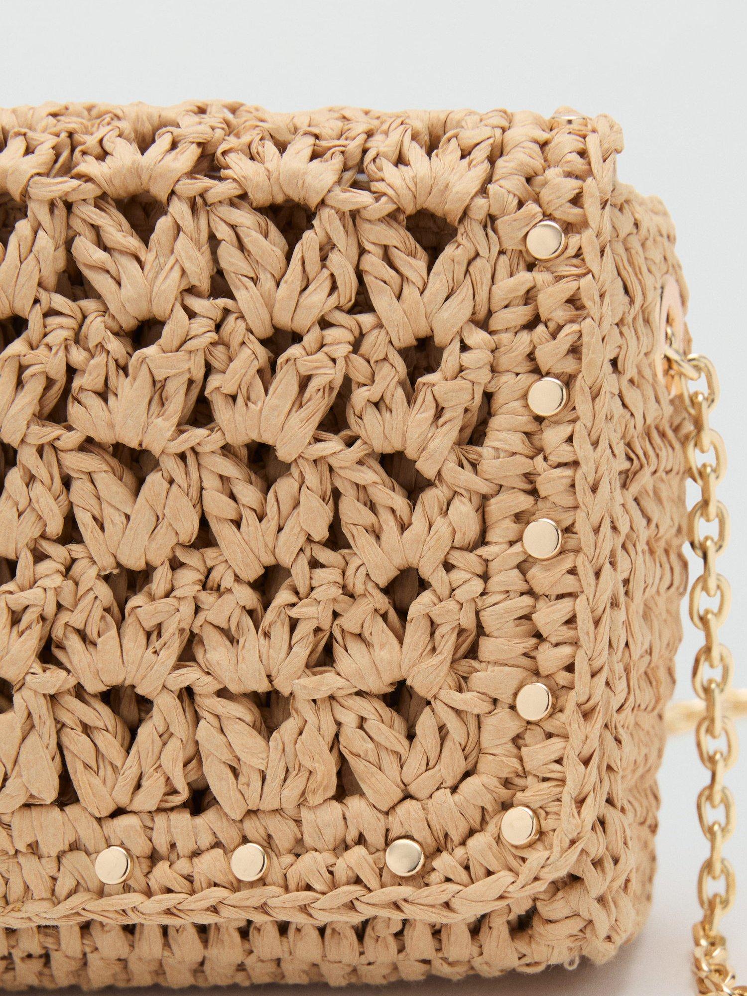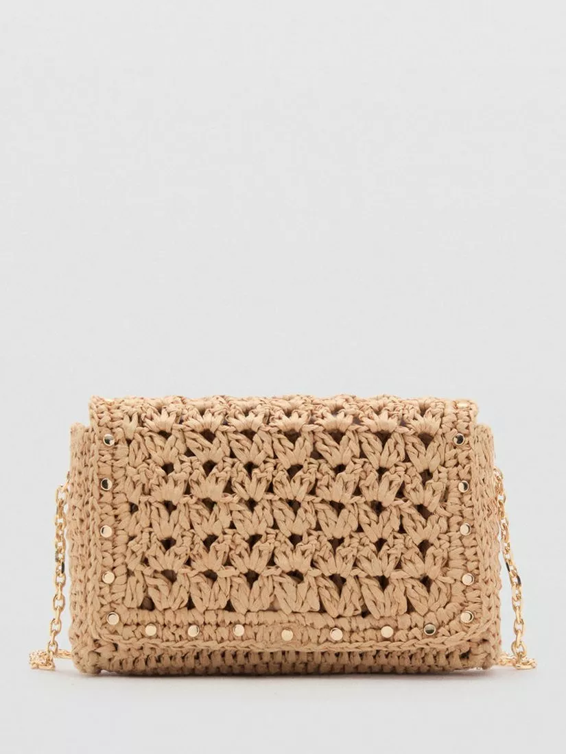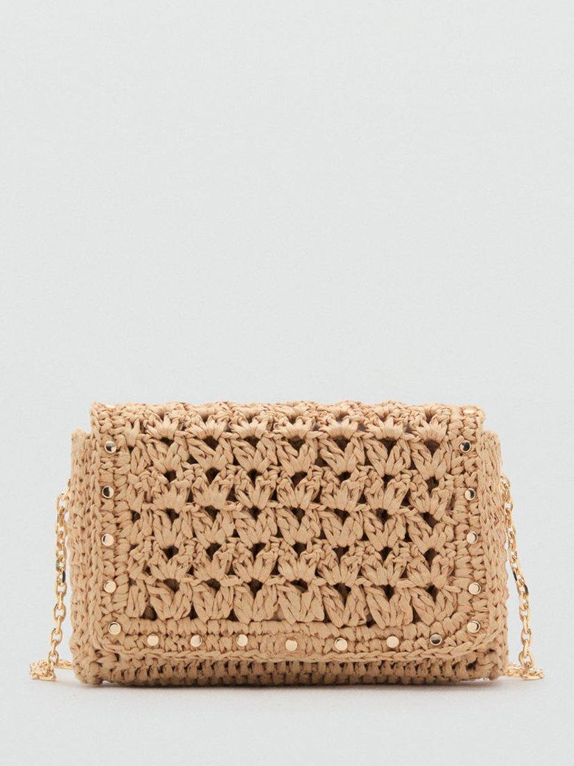 This woven flapover crossbody bag from Mango features a studded outer, adjustable strap and magnet fastening.