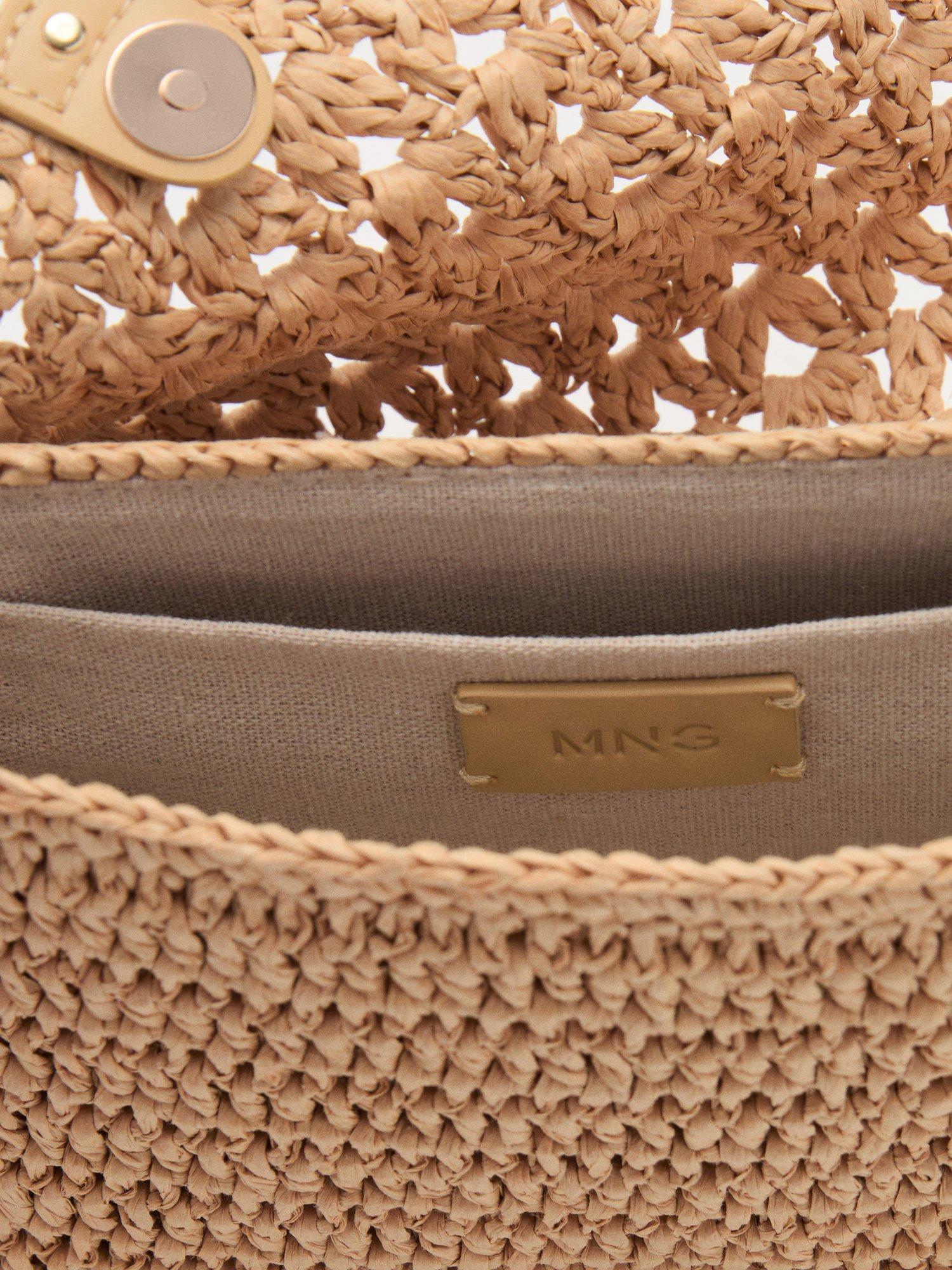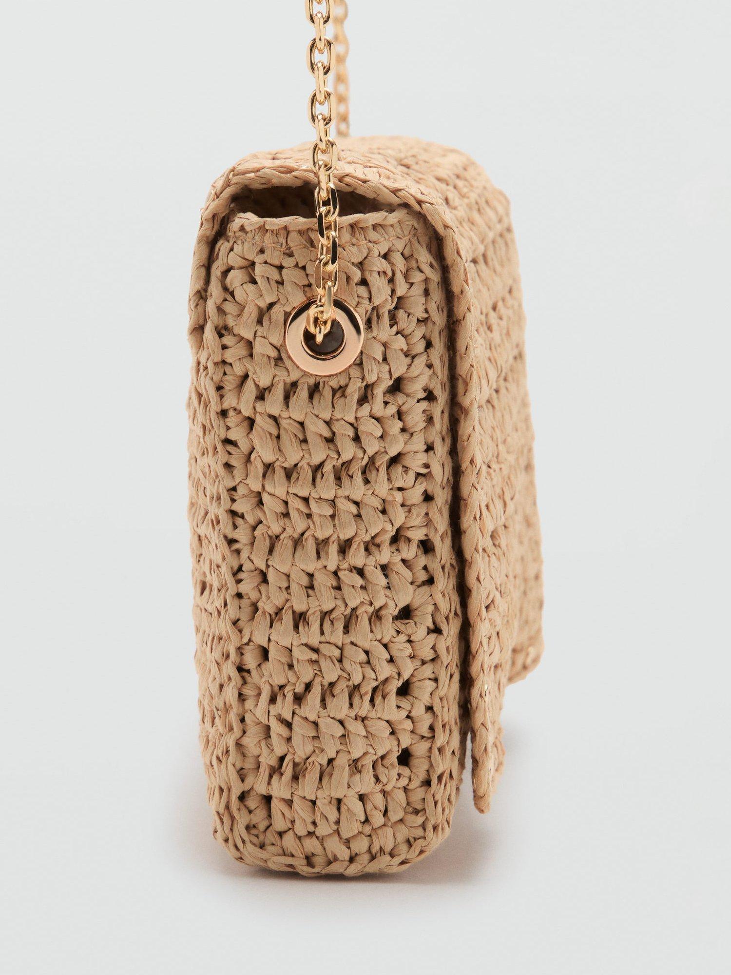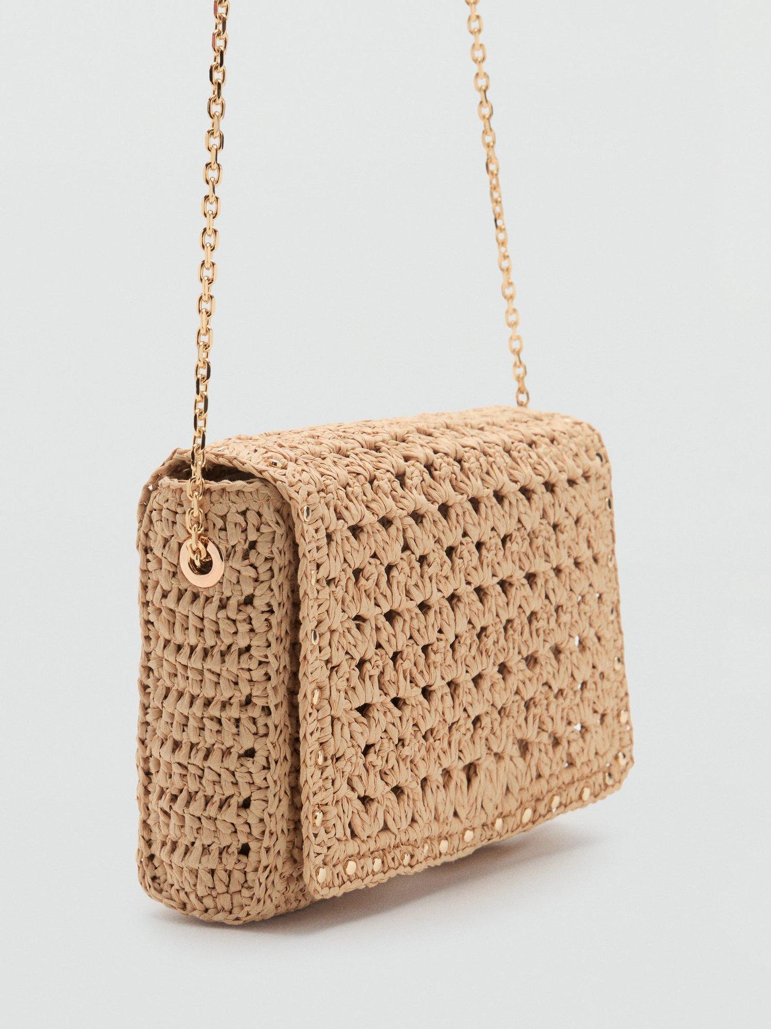 This woven flapover crossbody bag from Mango features a studded outer, adjustable strap and magnet fastening.