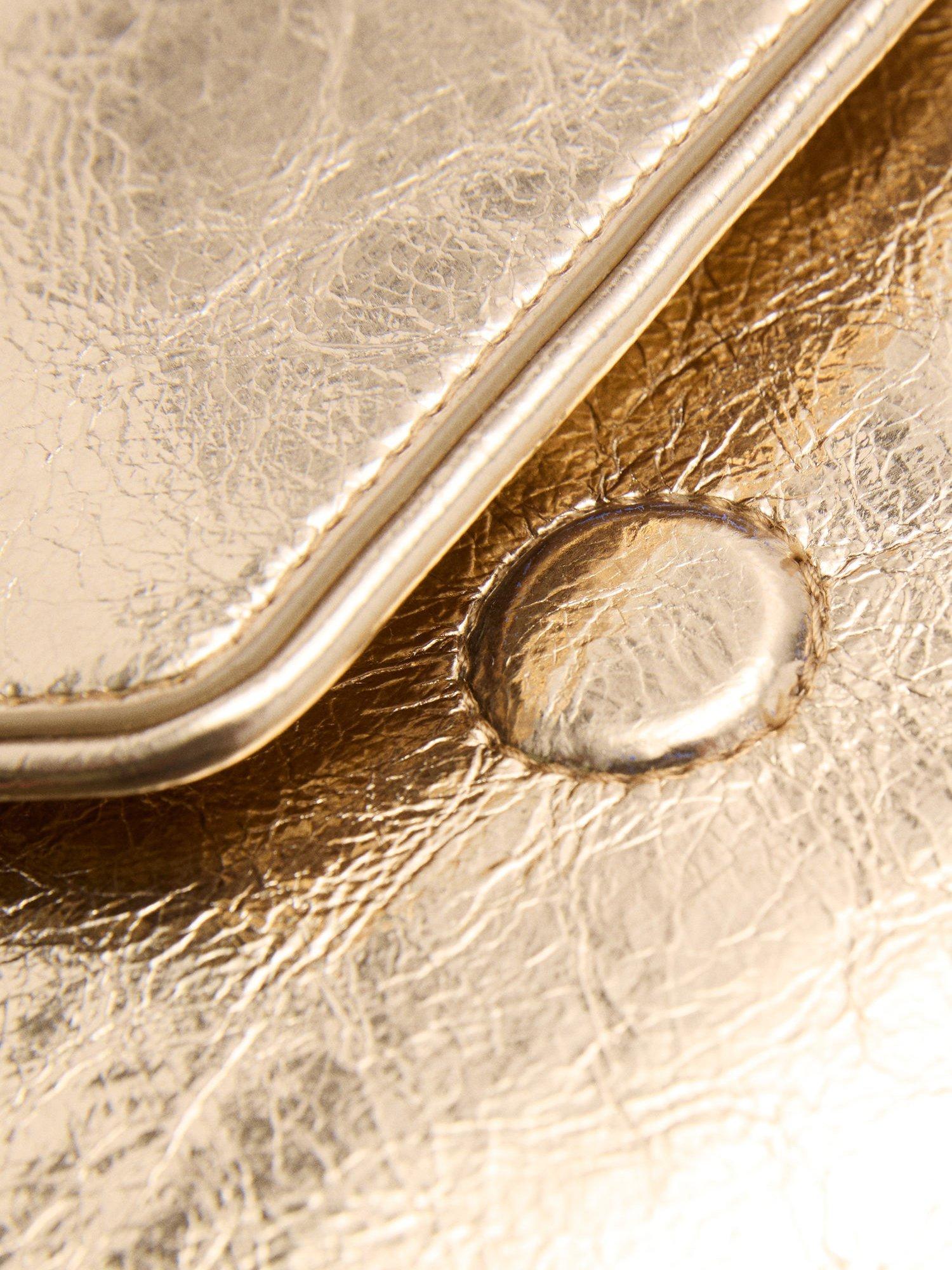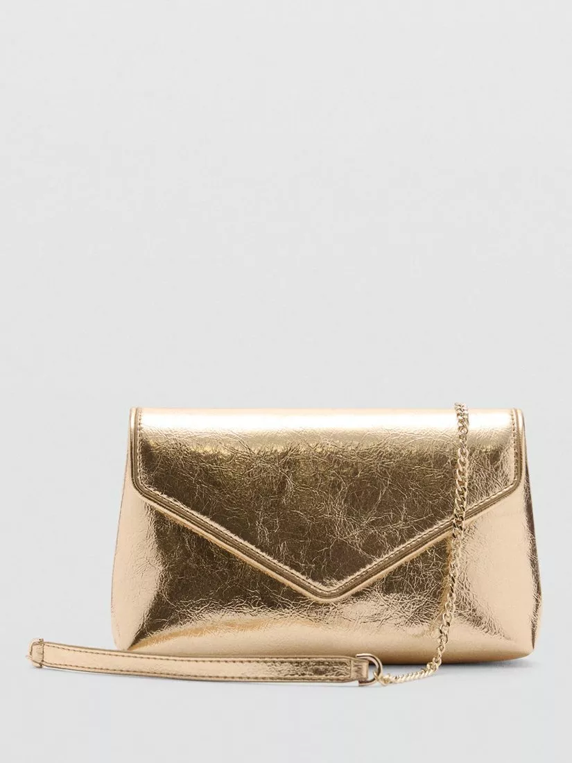 Refine after-dark looks with this elegant flapover clutch from Mango. Made from metallic faux leather, it features a long detachable chain strap and a magnetic fastening.