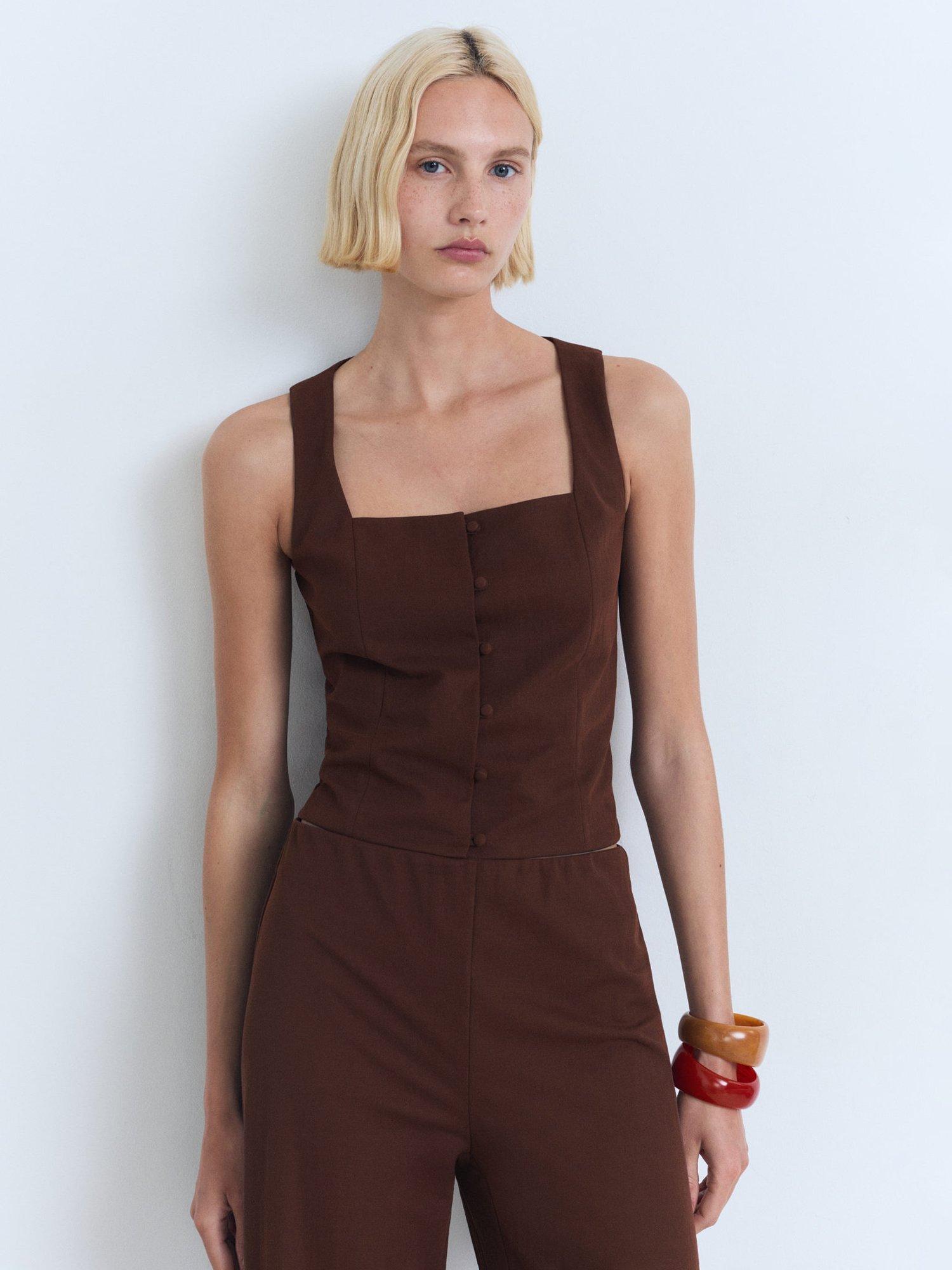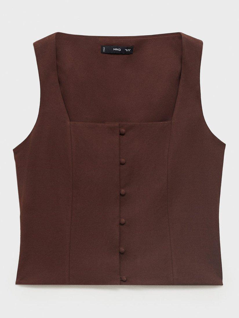 Crafted from a balanced cotton blend, this Mango vest elevates everyday dressing with unexpected charm. Designed with a square neckline, it's ideal when partnered with floaty midi skirts for summer days spent strolling around the city.