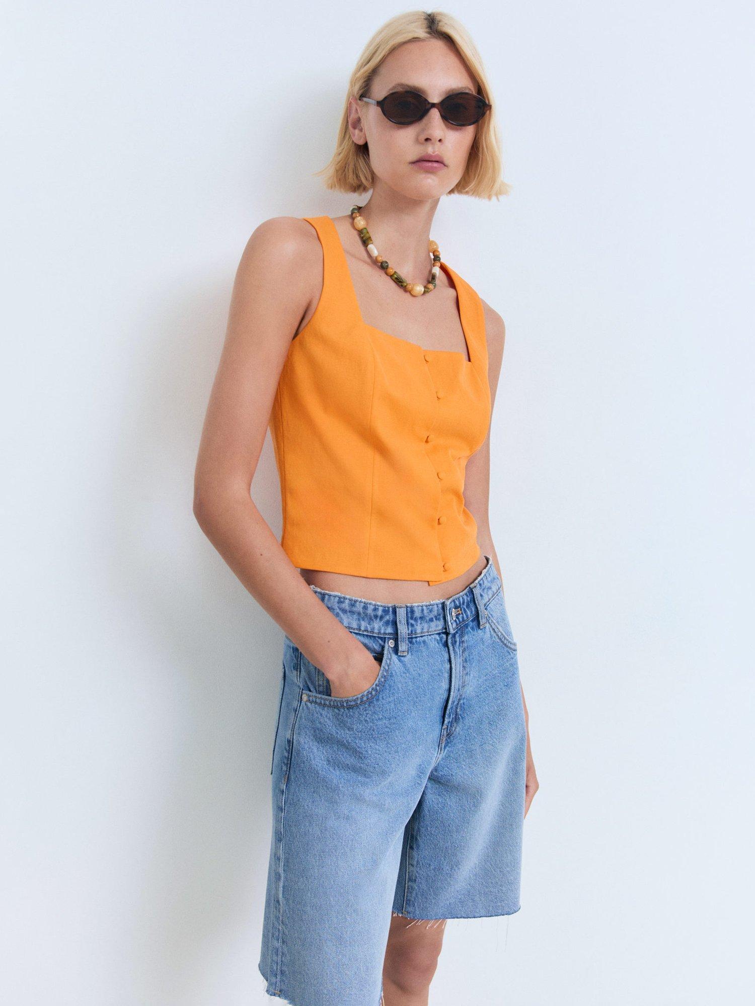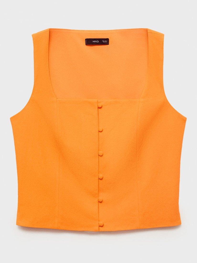 Crafted from a balanced cotton blend, this Mango vest elevates everyday dressing with unexpected charm. Designed with a square neckline, it's ideal when partnered with floaty midi skirts for summer days spent strolling around the city.