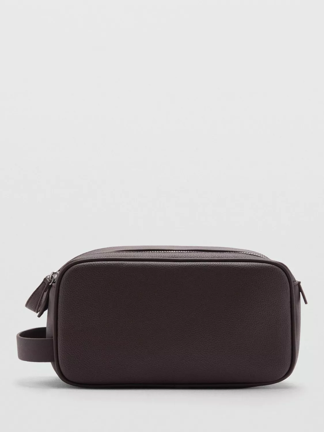 Made from pebble effect faux leather, this wash bag from Mango closes with a zip and features a side pocket an inner compartment and a short side handle for easy carrying.