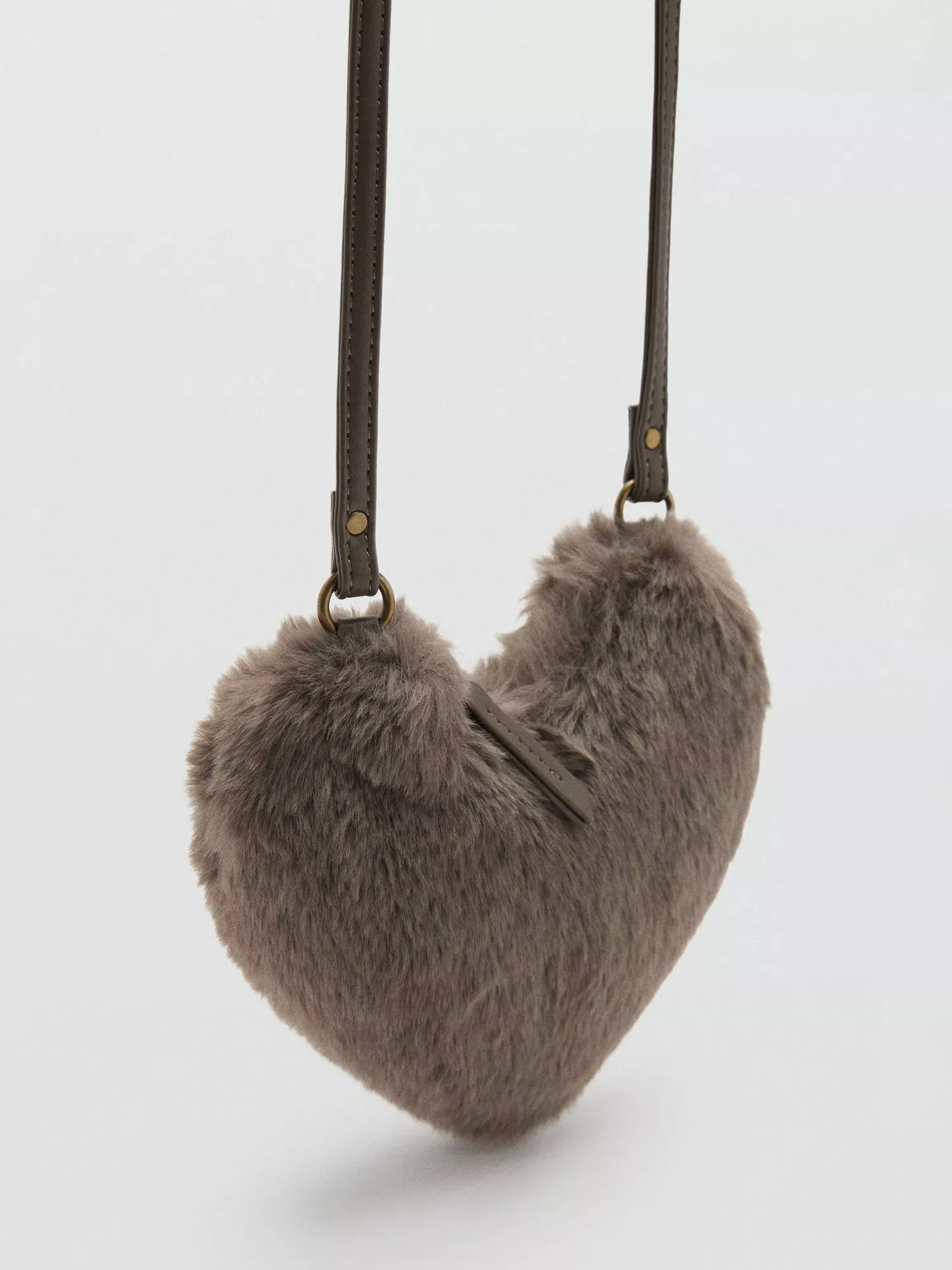 MangoFaux Fur Heart Crossbody Bag, Medium Brown