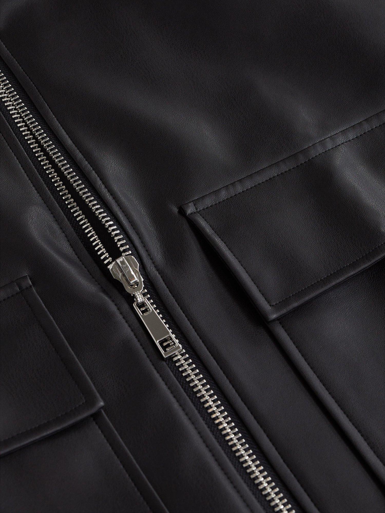 Featuring a fuss-free round neckline, it makes a sleek choice with its faux leather fabric.