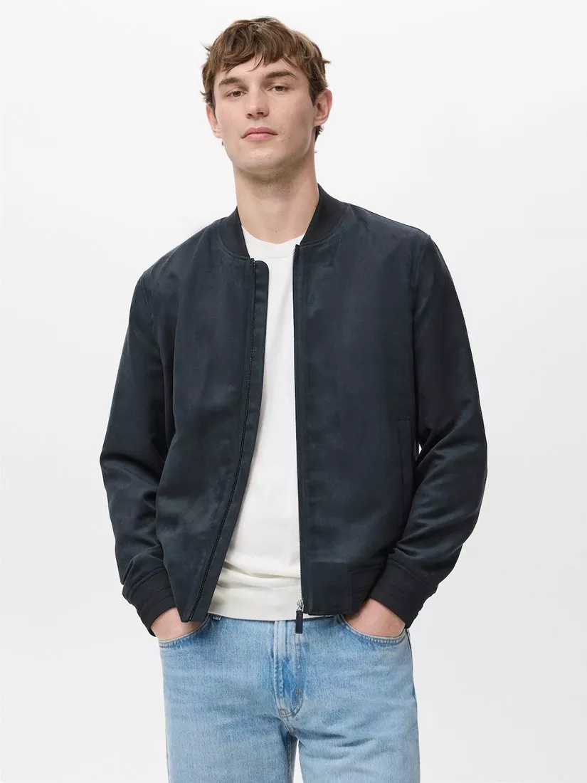 A classic suede-effect bomber jacket by Mango. Lined for comfort, it features a ribbed collar, cuffs, and hem. A versatile layer that fits your day perfectly, keeping you sharp and ready for anything.