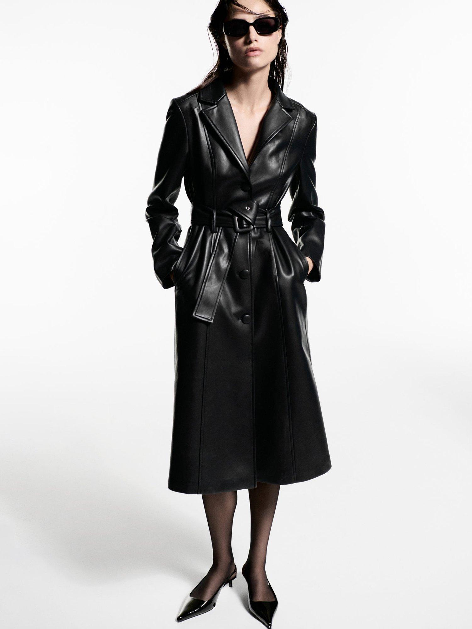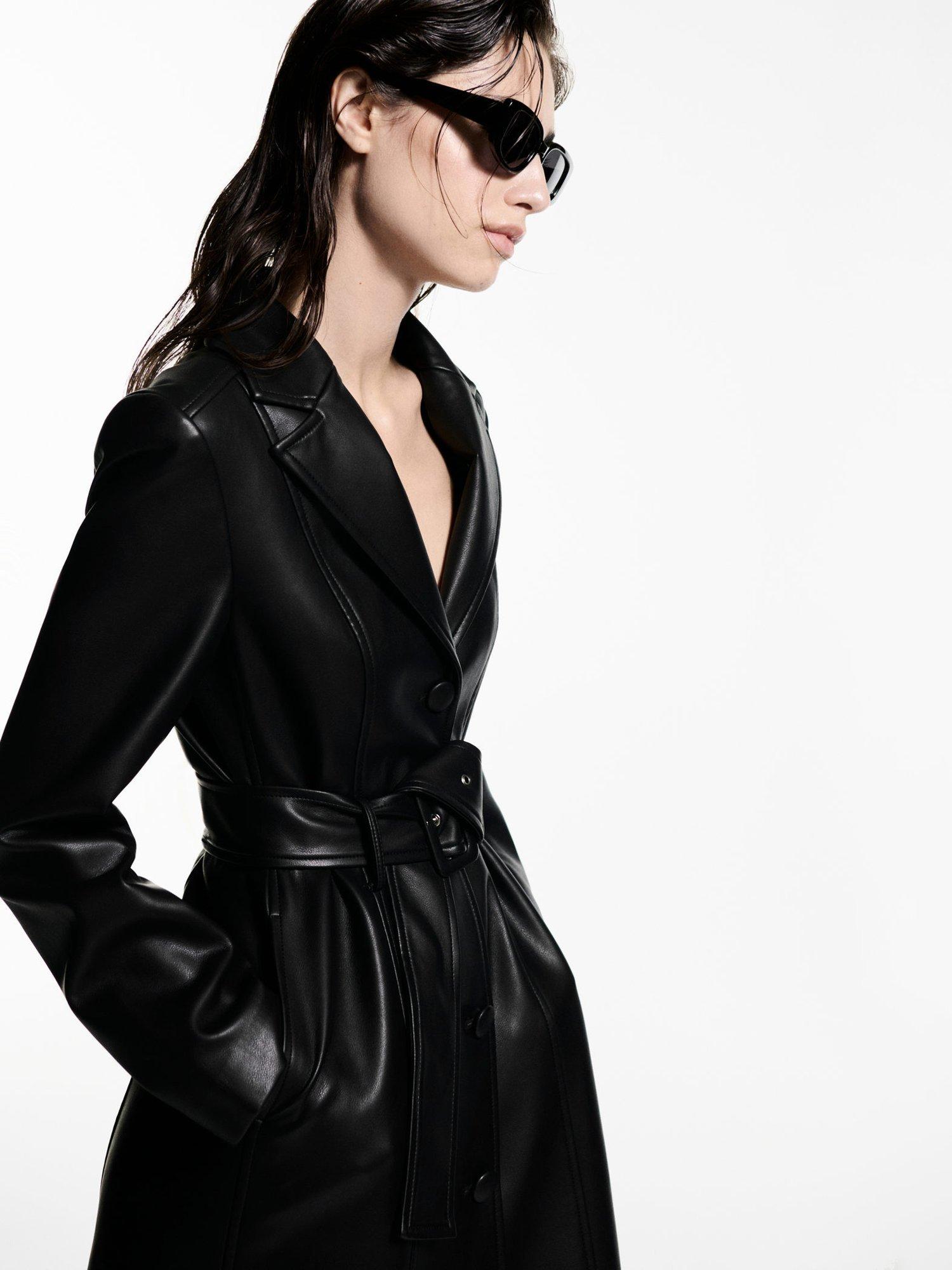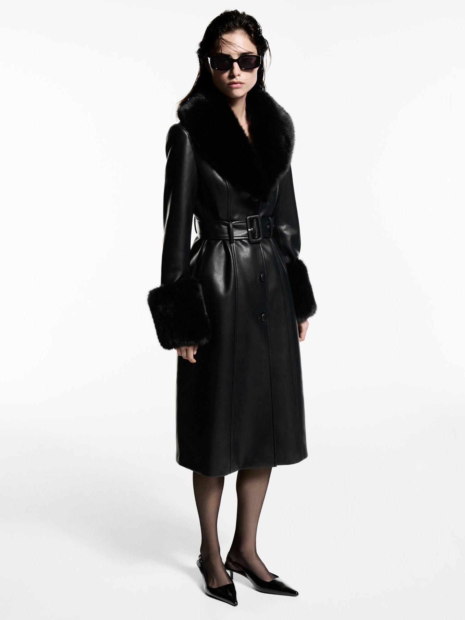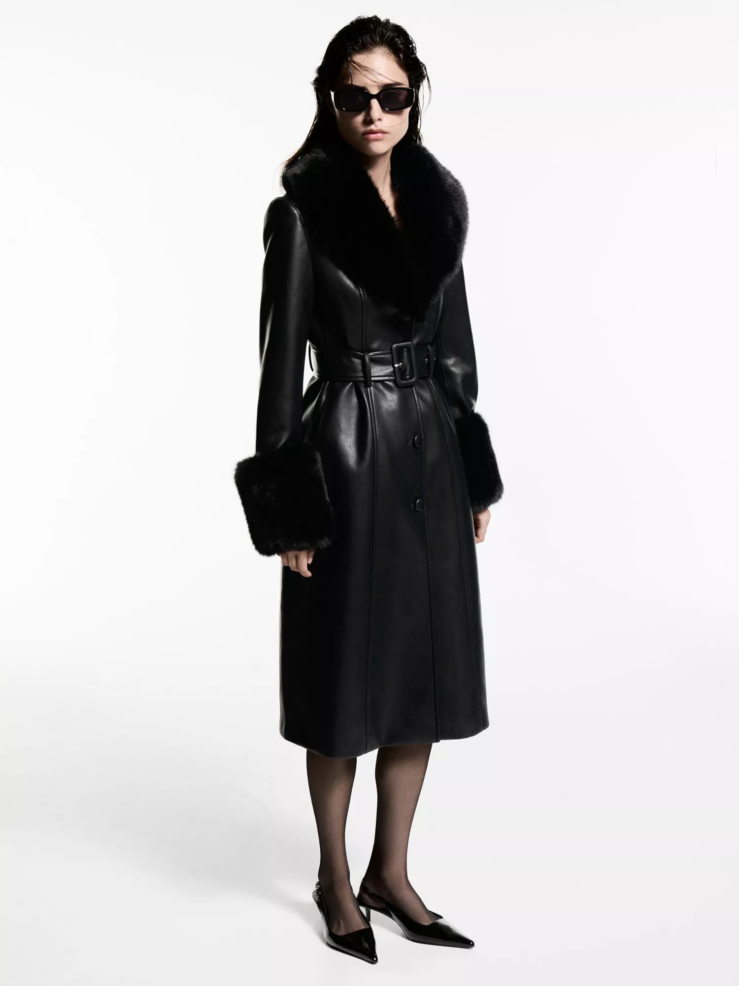 Smart, effortless and easy-to-wear, this trench coat from Mango keeps out the chill with its cosy faux fur collar and cuff accents and knee-length hem. Made from smooth faux leather, it's complete with a buckle belt at the waist.