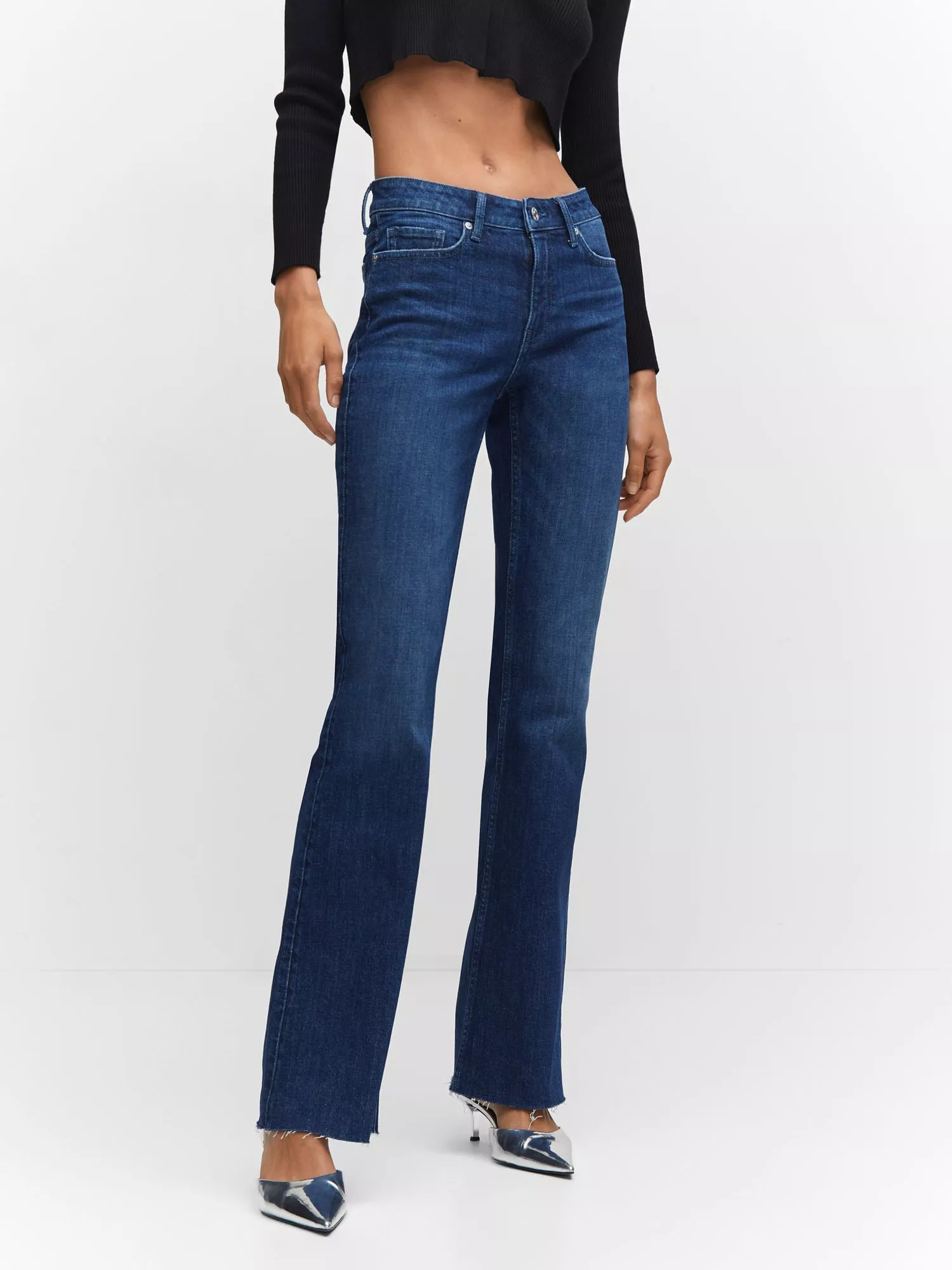 Hugging the hips and thighs before falling to flared hems, these mid rise jeans by Mango are made from a comfy cotton blend and fall to a regular length.
