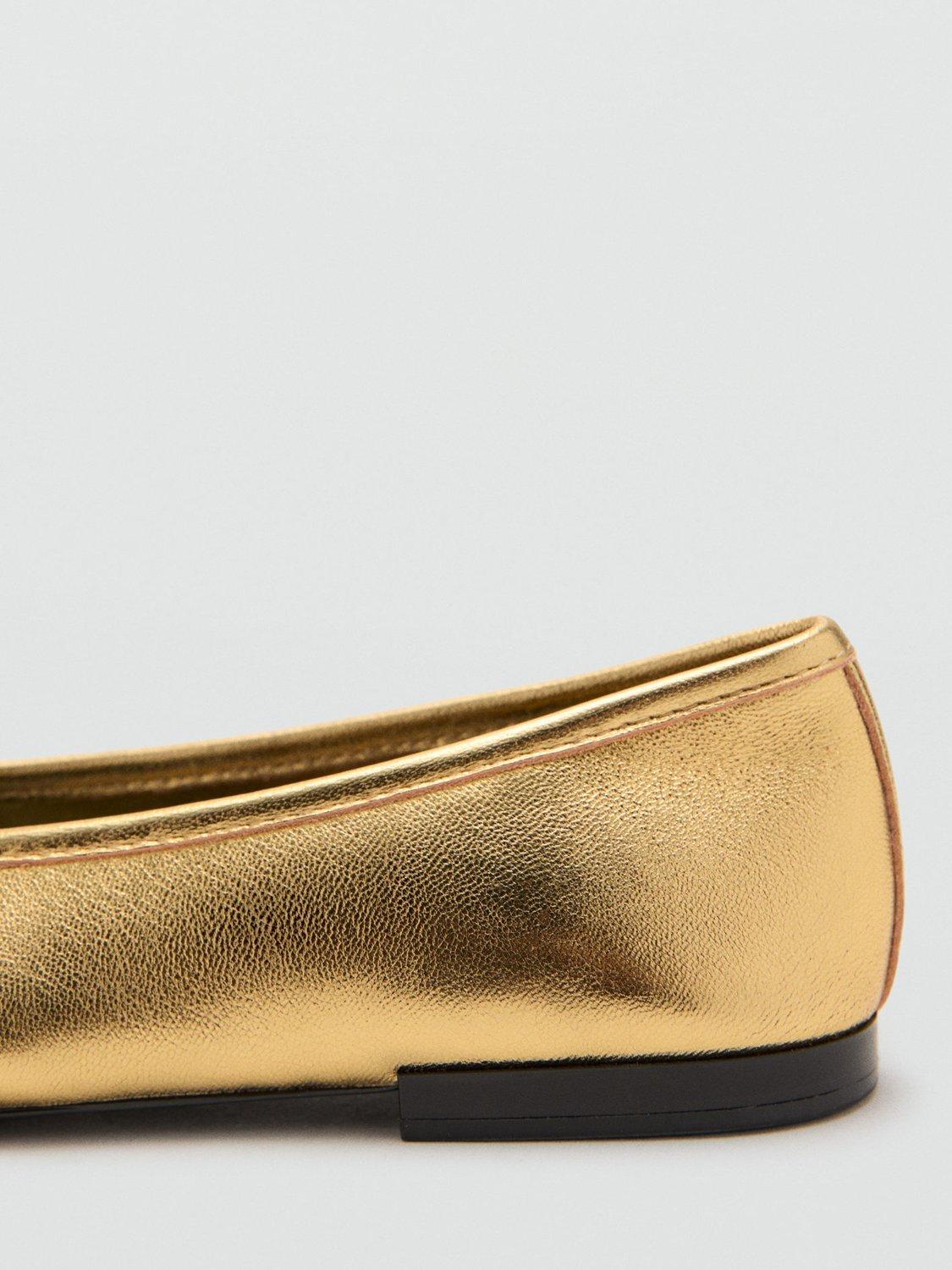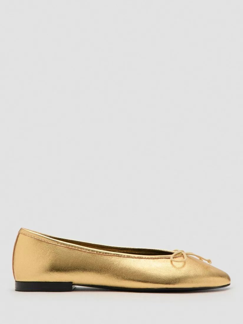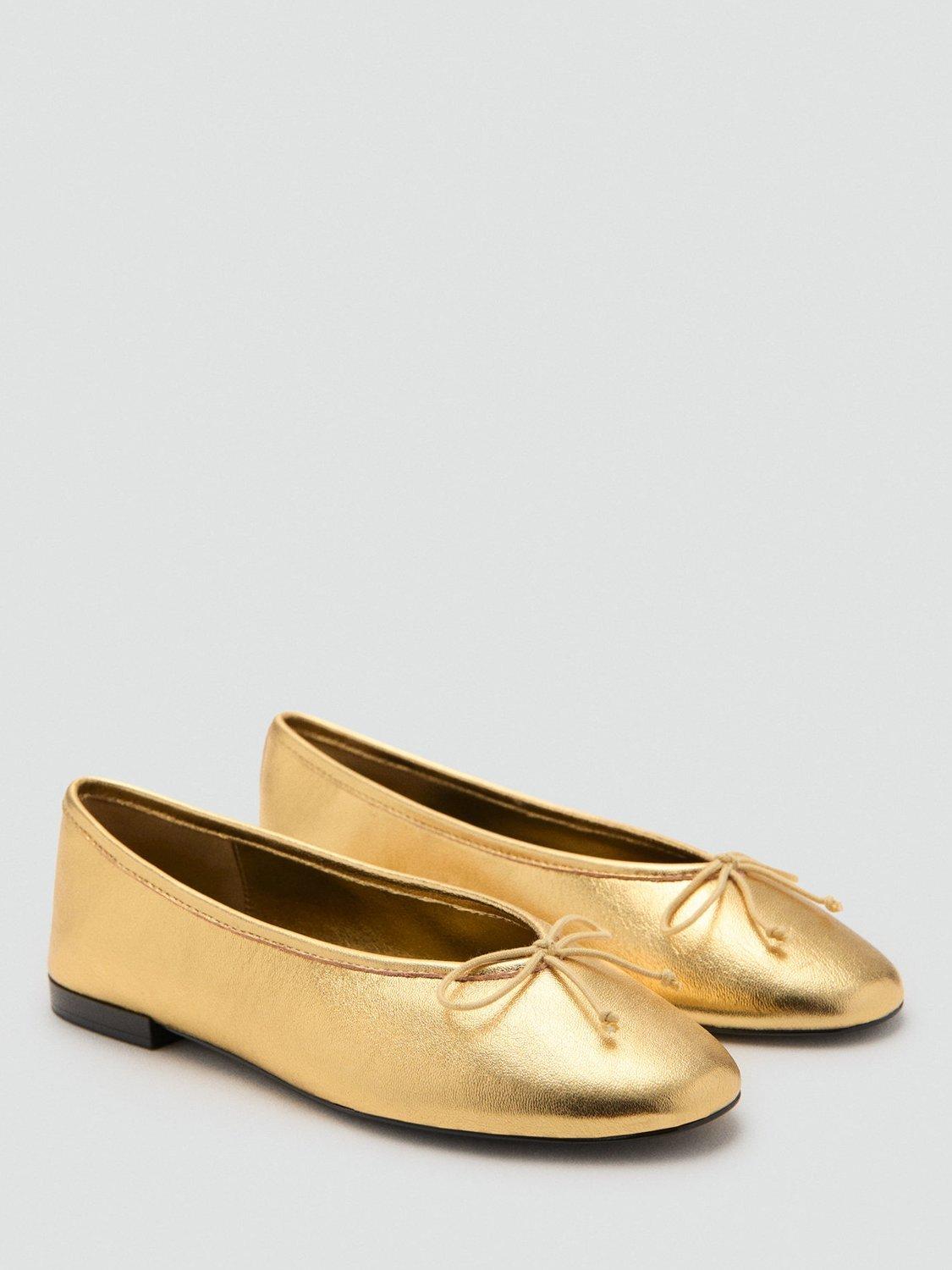 MangoFlater Leather Bow Ballerina Pumps, Gold