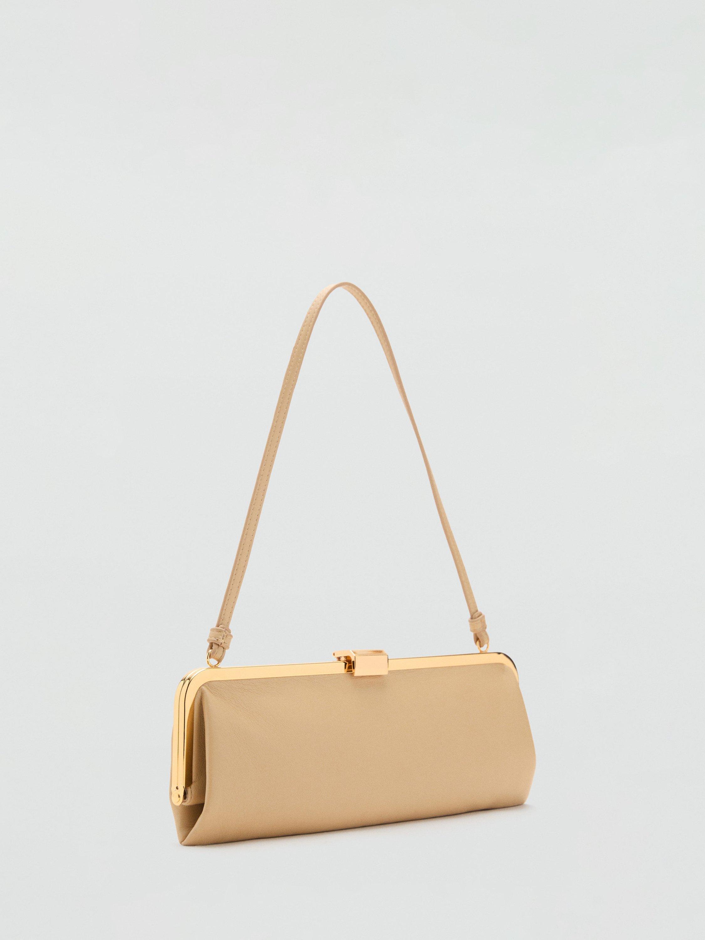 This clutch’s sleek design and clever clasp make it the perfect companion for your evening adventures. With a short strap for the option to carry by shoulder.